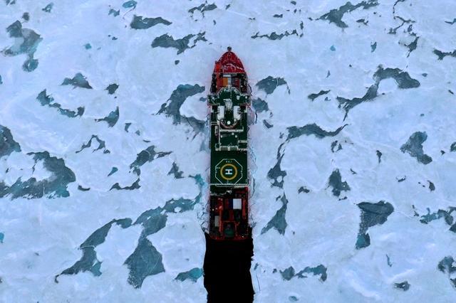 执行中国第15次北冰洋科学考察任务的“雪龙2”号近日回到上海,完成了为期83天的北冰洋科学考察。这是“雪龙2”号抵达北冰洋中央区(无人机照片,9月3日摄)。
