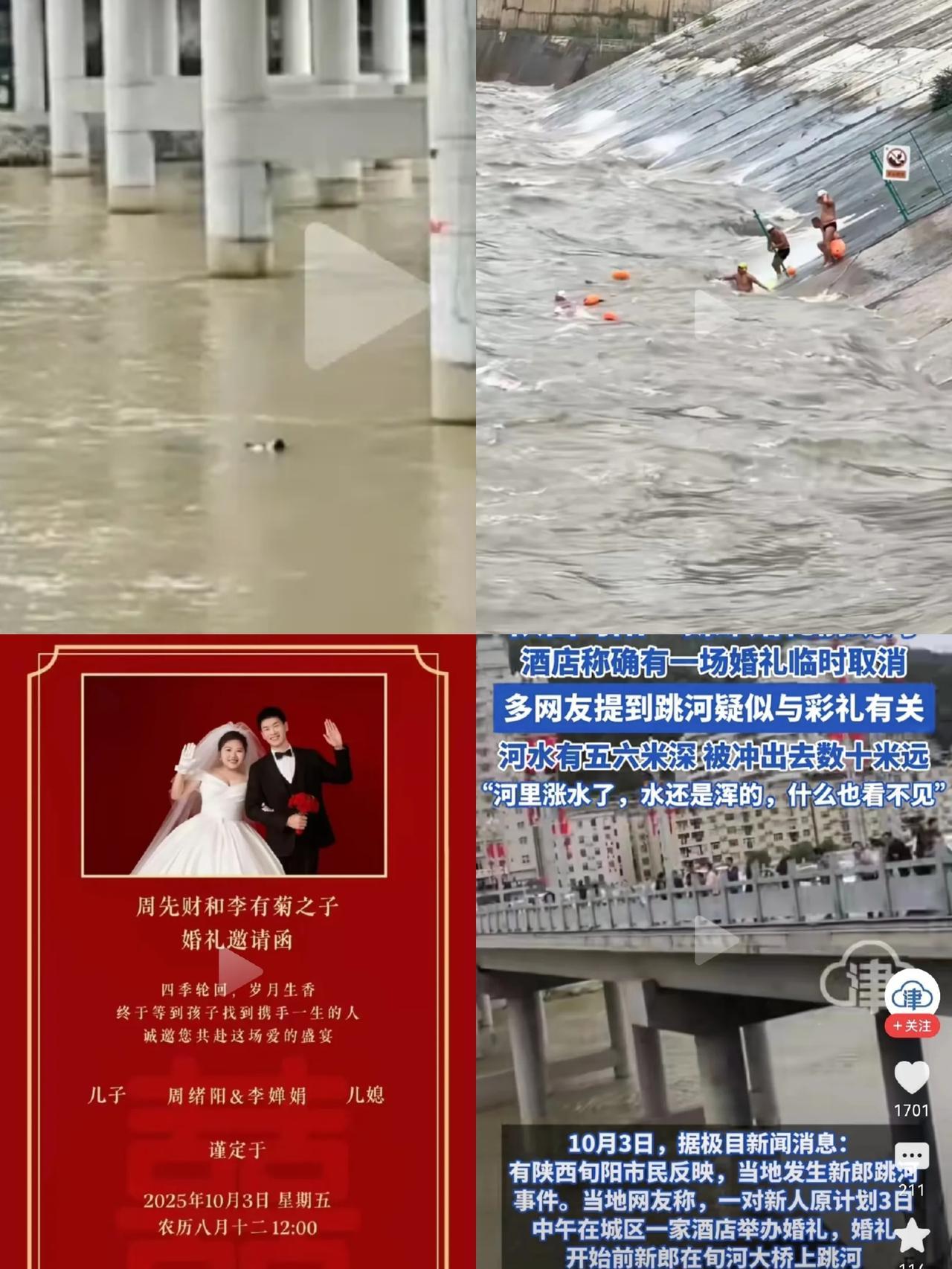 旬阳男子婚礼当天跳河事件,女的接下来可能面临3个窘境!第一、退还20万的彩礼