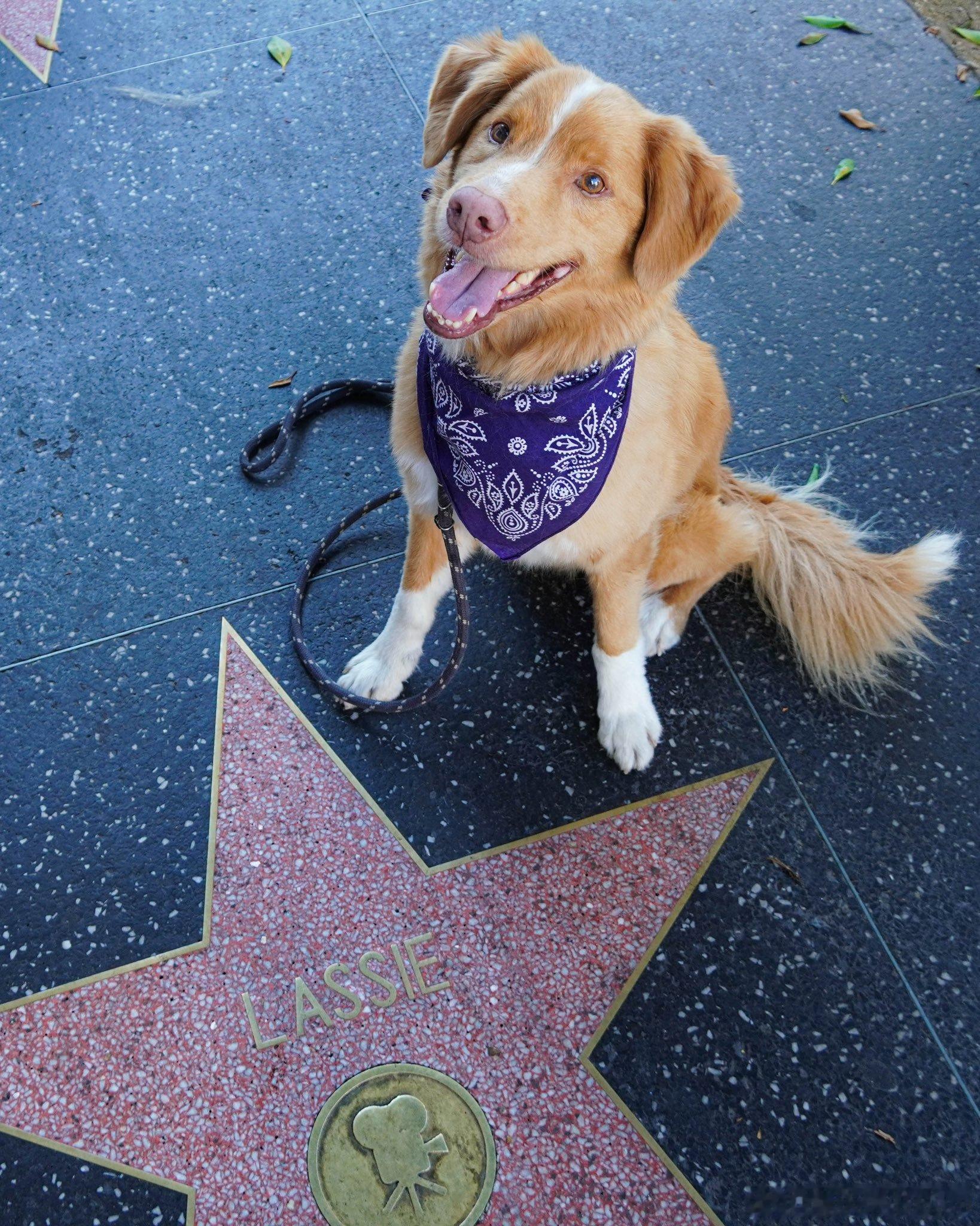 《好狗狗》中的小狗Indy在好莱坞星光大道上与其他留名的小狗的合影