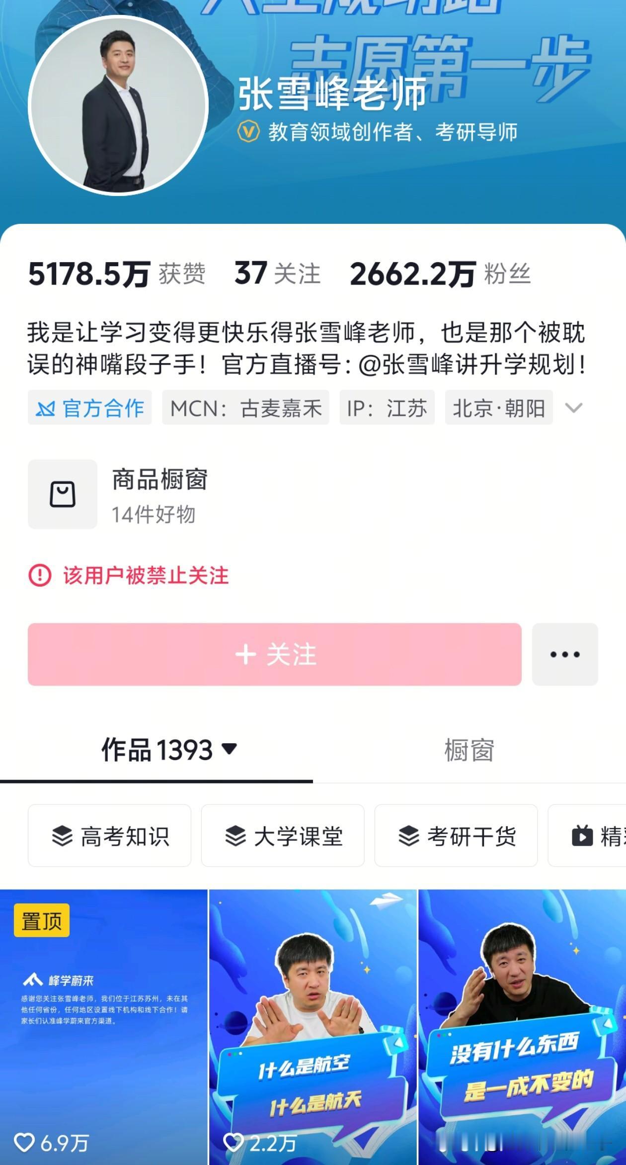 嘎子账号解封了,我不理解! 但让人更不理解的是,蓝战非和张雪峰两人的账号现在还