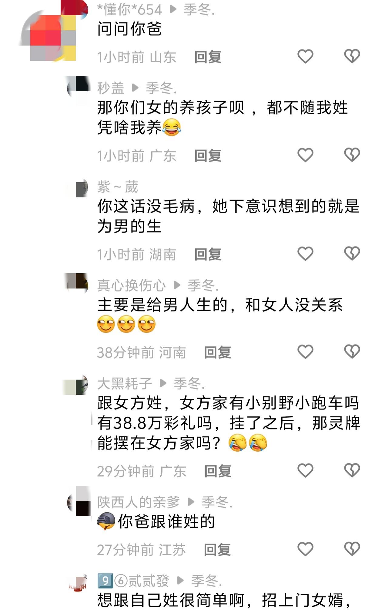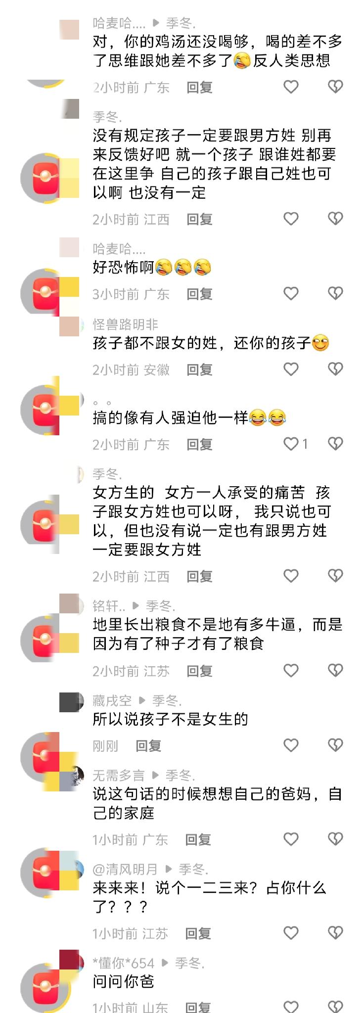 且问一下诸君 孩子随父姓还是随母姓? 现在有一部分女生拿着 “我给你生了孩子”这句话反驳男生。 我想知道,孩子难道不是该女生的吗? 主要孩子跟着男的姓。 那随这母亲姓的话, 女生是真的自己的孩子是自己血脉的 男生该如何知道? 当然,现在的亲生率普遍降低,但给男生一个念想不可以? 比如某些个“舔狗”不想打破这层幻想。 子随母姓父系基因百家姓 随母姓 迁户口随母姓 随男方姓 子随父母姓 女儿叫啥 随母姓
