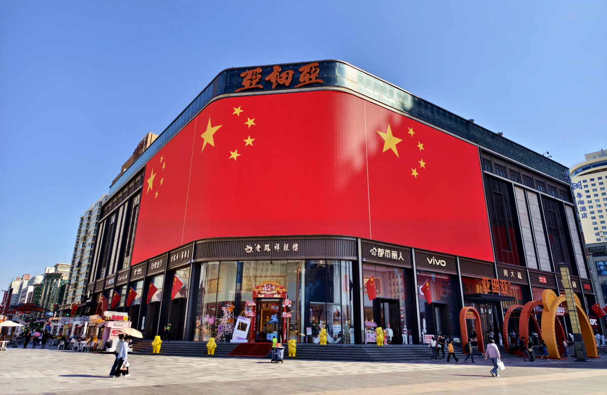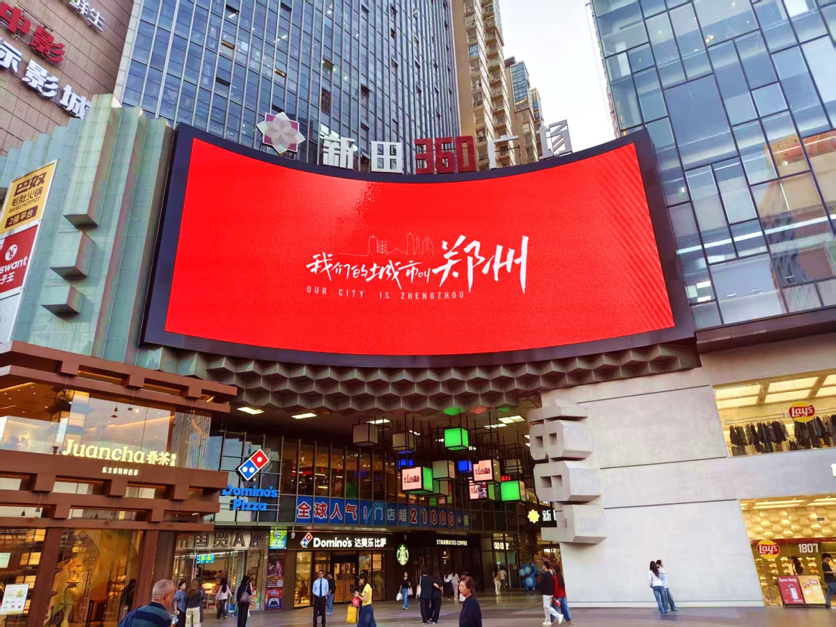 在360广场、正弘城、万象城、锦艺城等商贸中心户外大屏,爱国元素与“我们的城市叫郑州”主题巧妙融合,市民在购物休闲时,抬头便能看见熟悉的城市符号与炽热的爱国表达,浓浓的归属感与自豪感油然而生,共同传递着对城市与祖国的深情祝福。