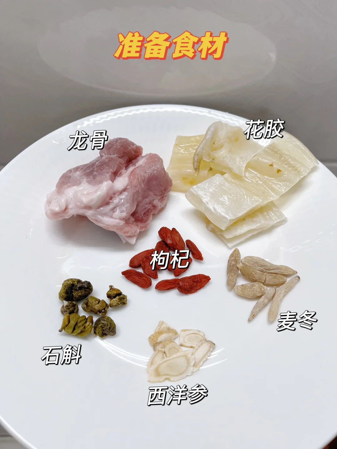 龙骨、花胶、西洋参、石斛、麦冬、枸杞