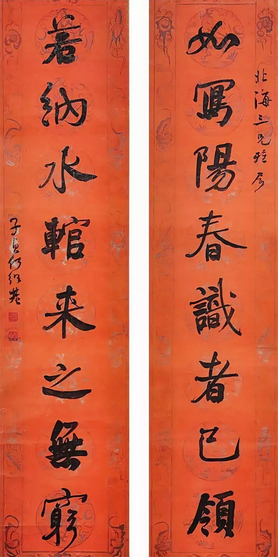 看看刘墉和何绍基写的颜体对联,刘墉得颜体之“肉”,何绍基得颜体之“筋”,同是学习颜体书法,写出来风格迥异。这两位是清代学颜真卿书法的那些书法家中较为特殊的两位,因为他们写的颜体,均有较强的个性化特征,也可以说是真正从颜体中走出来了。