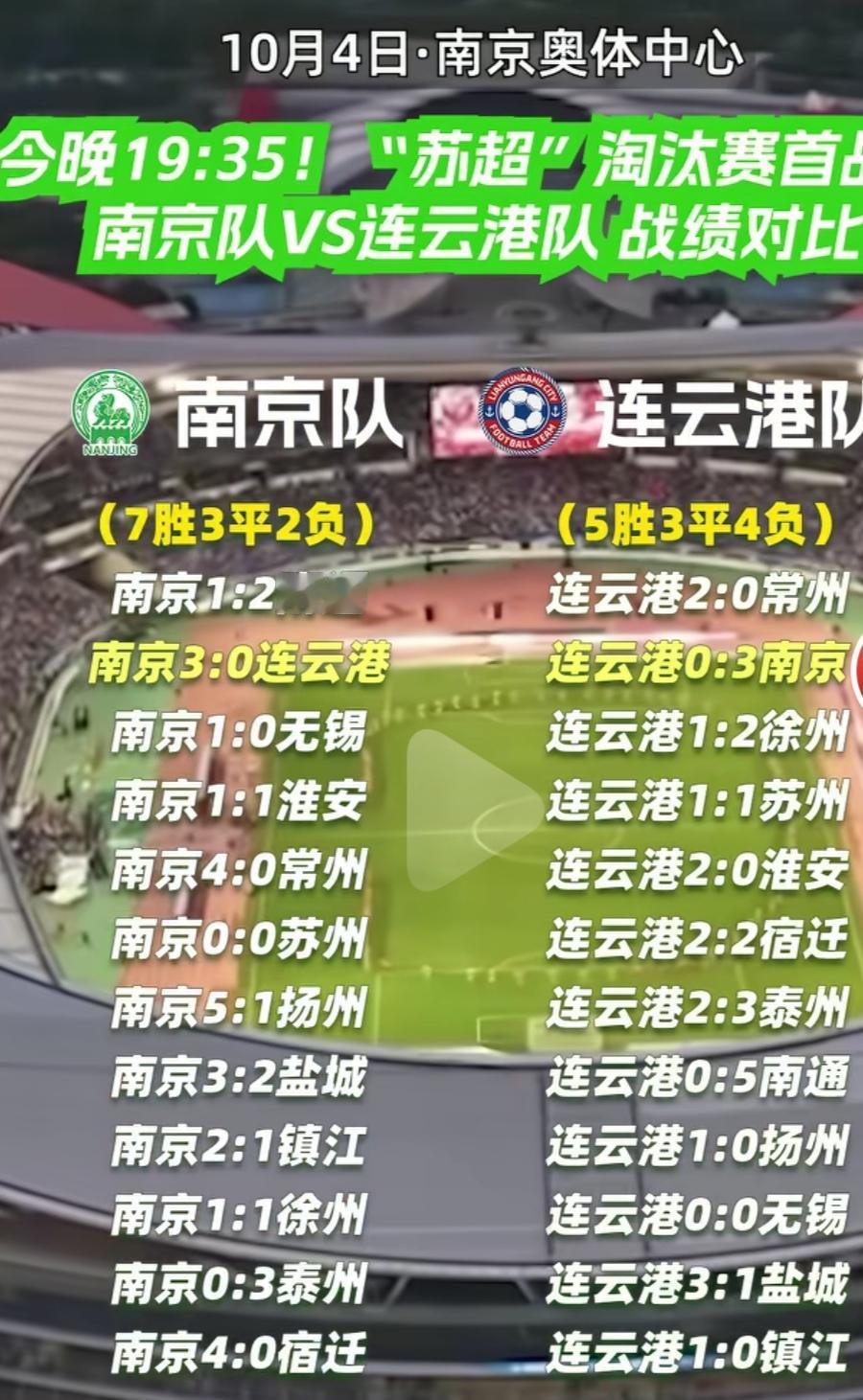 看苏超成绩,南京应该完胜连云港。 常规赛3比0,淘汰赛也没啥悬念。 今年赢下比赛就行,爆冷就给淮安对南通。 连云港球员之前说,人的野心是越来越大的,刚开始只想进季后赛,现在想赢南哥? 大家看好哪边?第二南京,第七连云港?[呲牙]