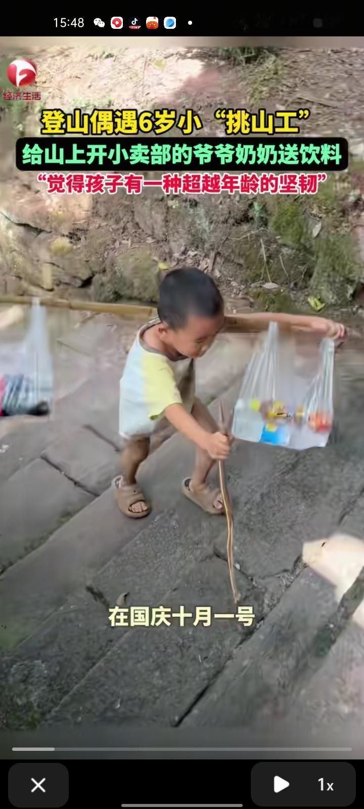 10月1日,黄山市休宁县。女子发视频称,登齐云山途中遇到六岁“小挑山工”,给山上