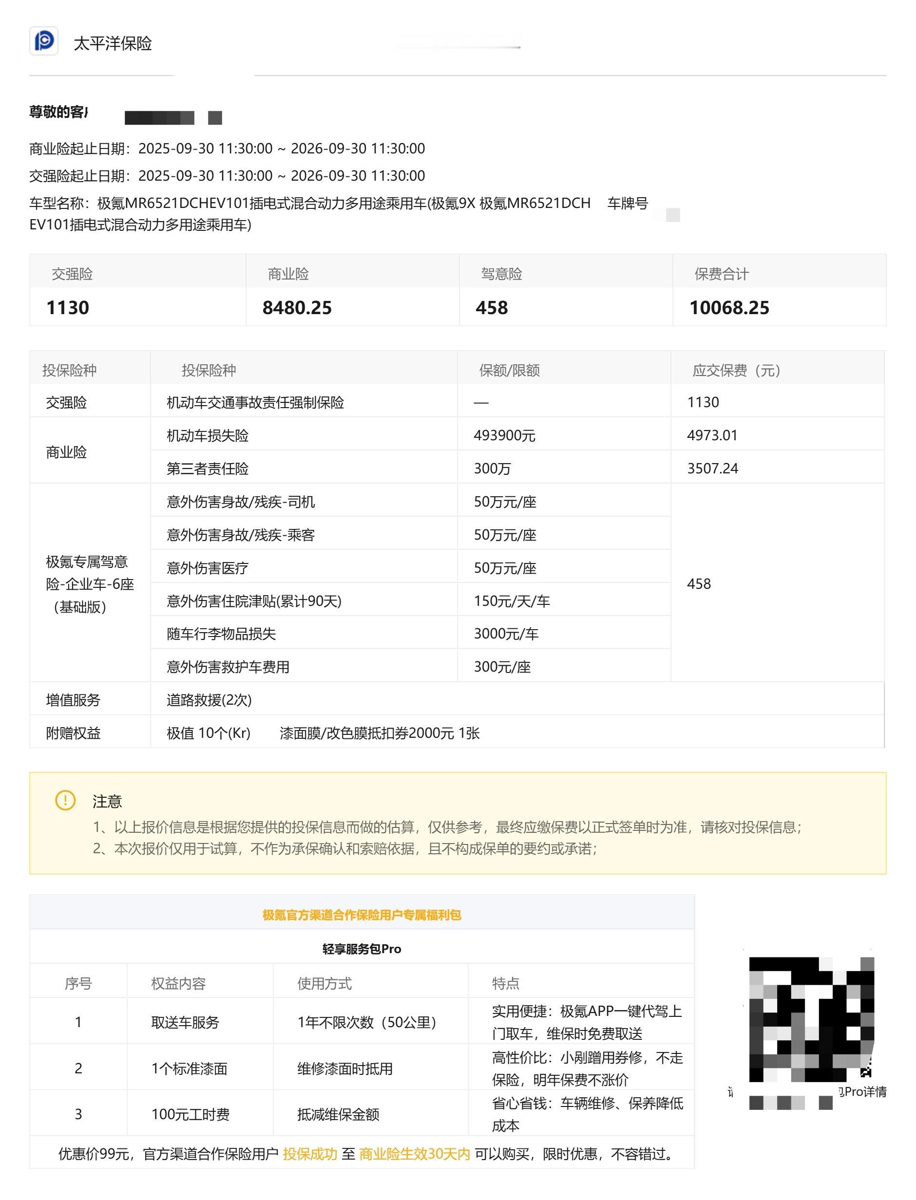 一洲长测车 / 极氪9X车险保费