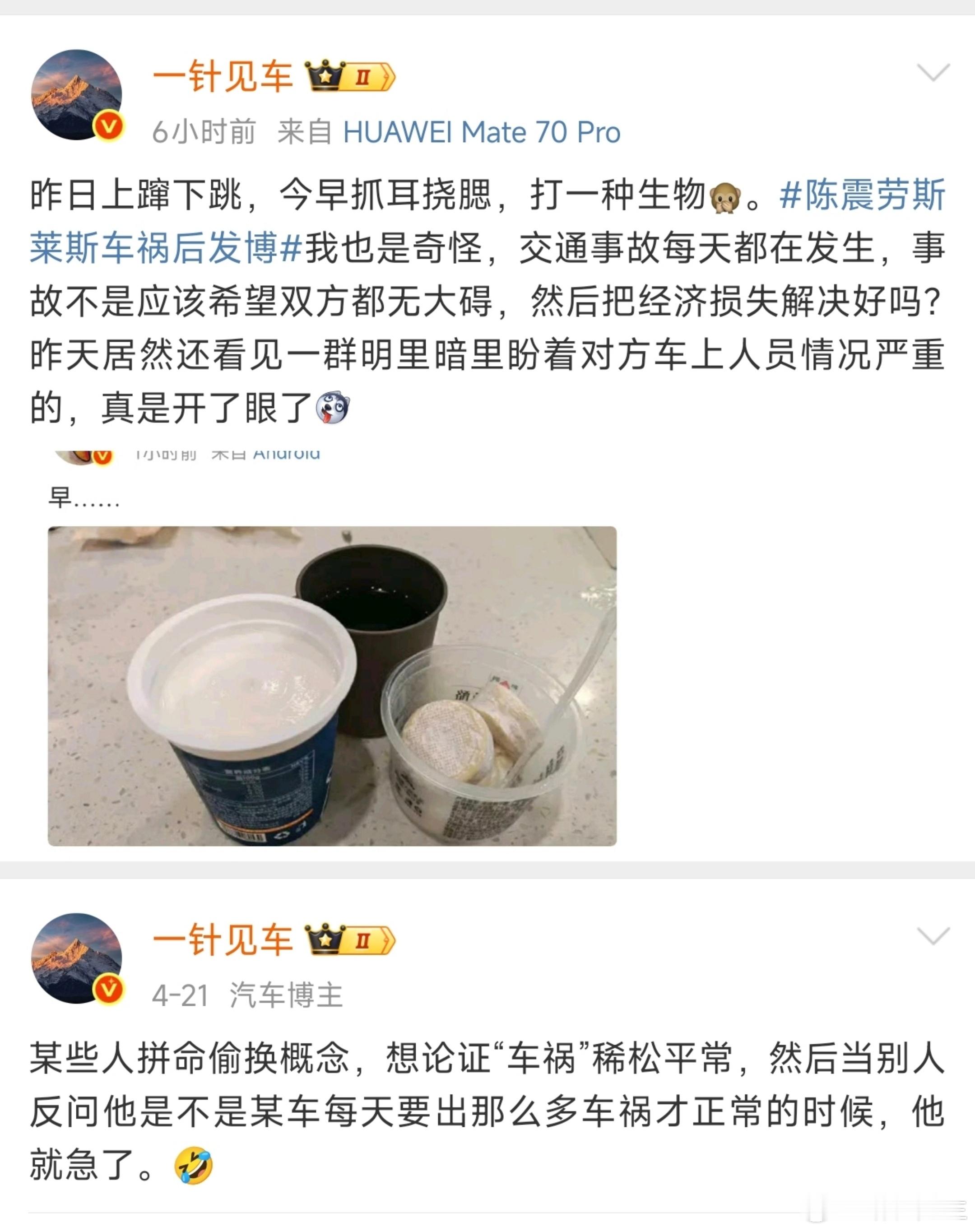 车圈大V“闫闯”表示:不幸灾乐祸、不落井下石。