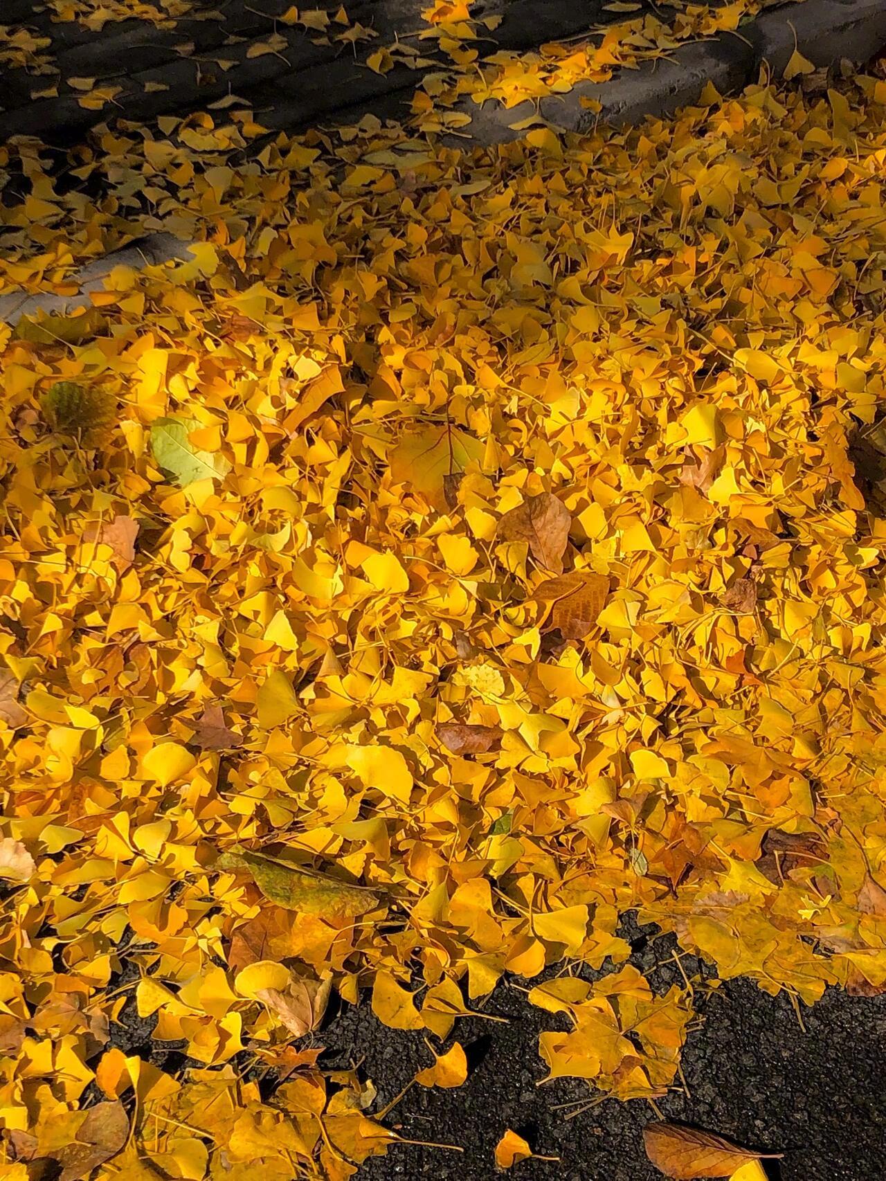 北京的秋天,完全满足了我对秋天的幻想,树叶飞舞,我的头顶、我的眼中和我的脚底,都满是这金黄色。我或是抬头仰望它,或是低头拾起它,当我不小心踩着它们的时候,好似秋天就融进了我的感觉里,难怪老舍先生说“北平之秋,便是天堂”。