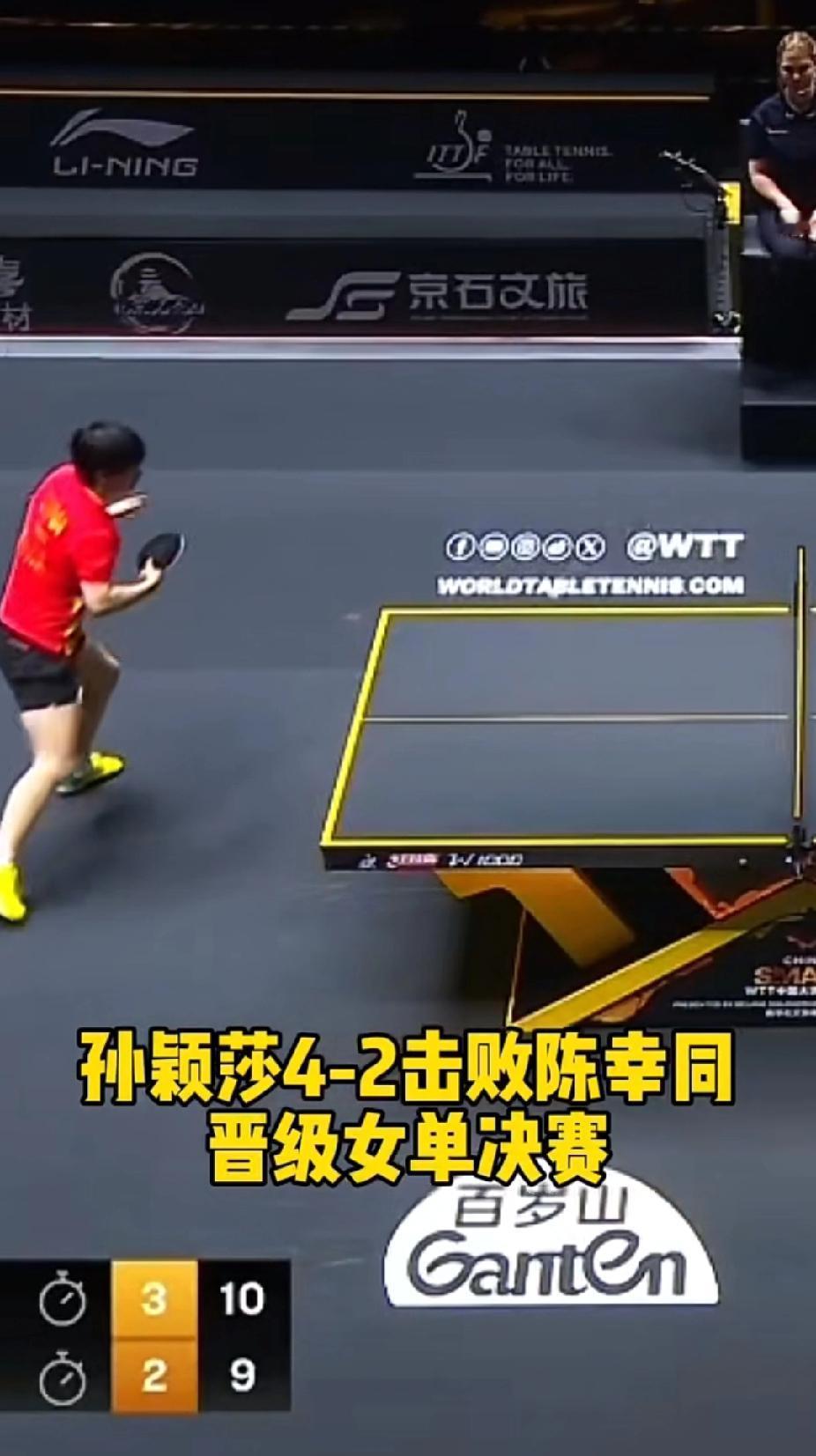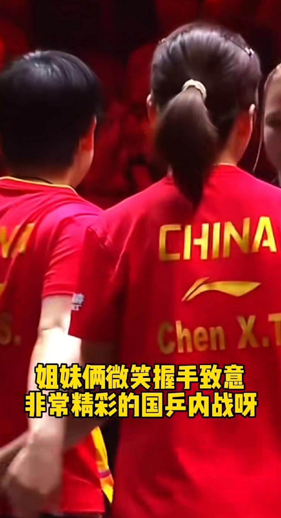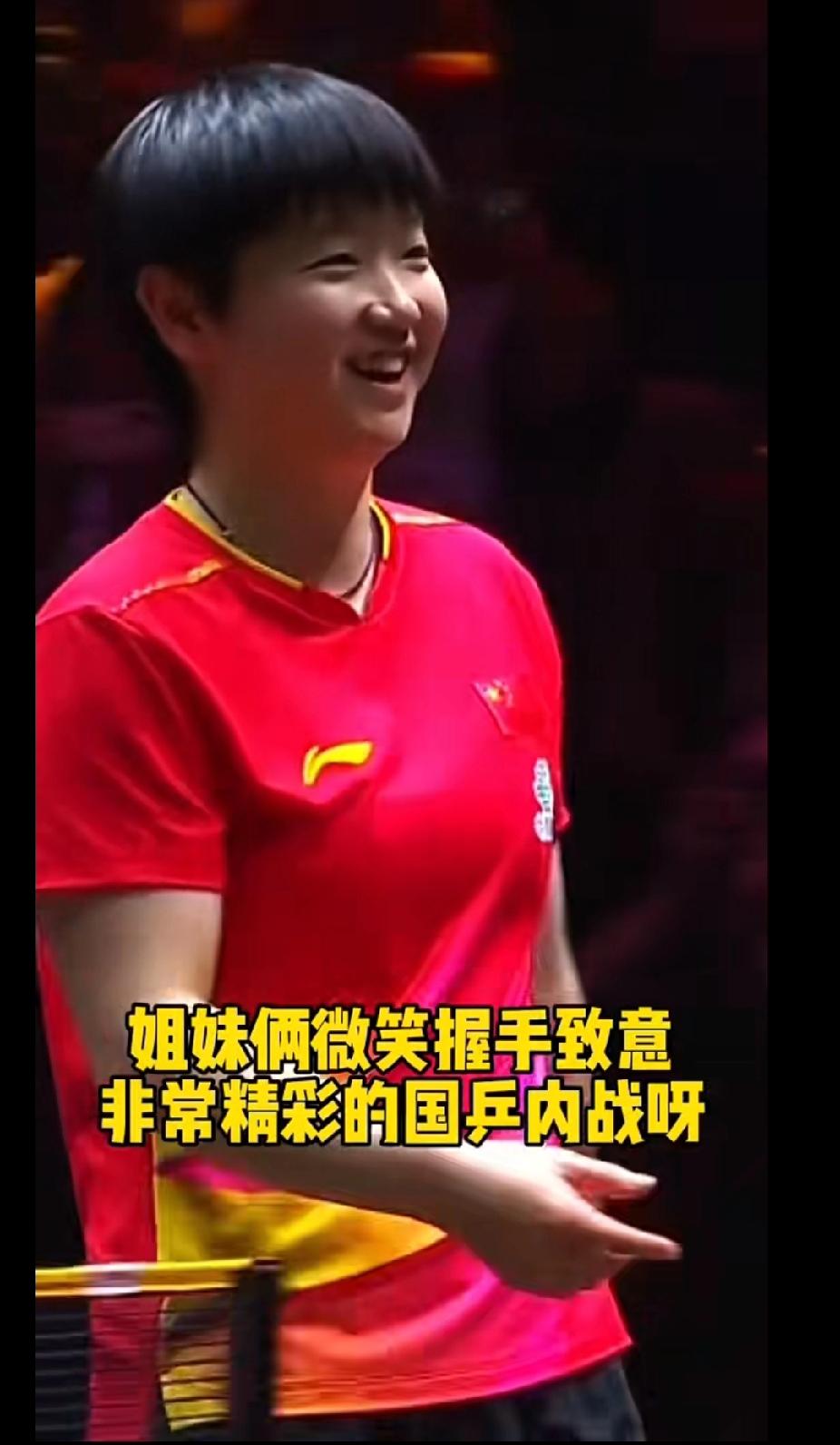 WTT北京大满贯女单半决赛上演精彩内战!孙颖莎4-2力克陈幸同晋级决赛 在2025年WTT中国大满贯女单半决赛中,孙颖莎与陈幸同展开了一场极具观赏性的国乒内战。最终孙颖莎以4:2的比分胜出,成功晋级决赛。 比赛末局,陈幸同连续两次擦边球的精彩表现,让紧张的赛场瞬间充满了轻松的氛围,两人都被这戏剧性的场面逗笑。赛后,姐妹俩微笑握手致意,尽显国乒队员间的情谊与体育精神。这场精彩对决,也让球迷们对接下来的女单决赛充满期待!孙颖莎 陈幸同