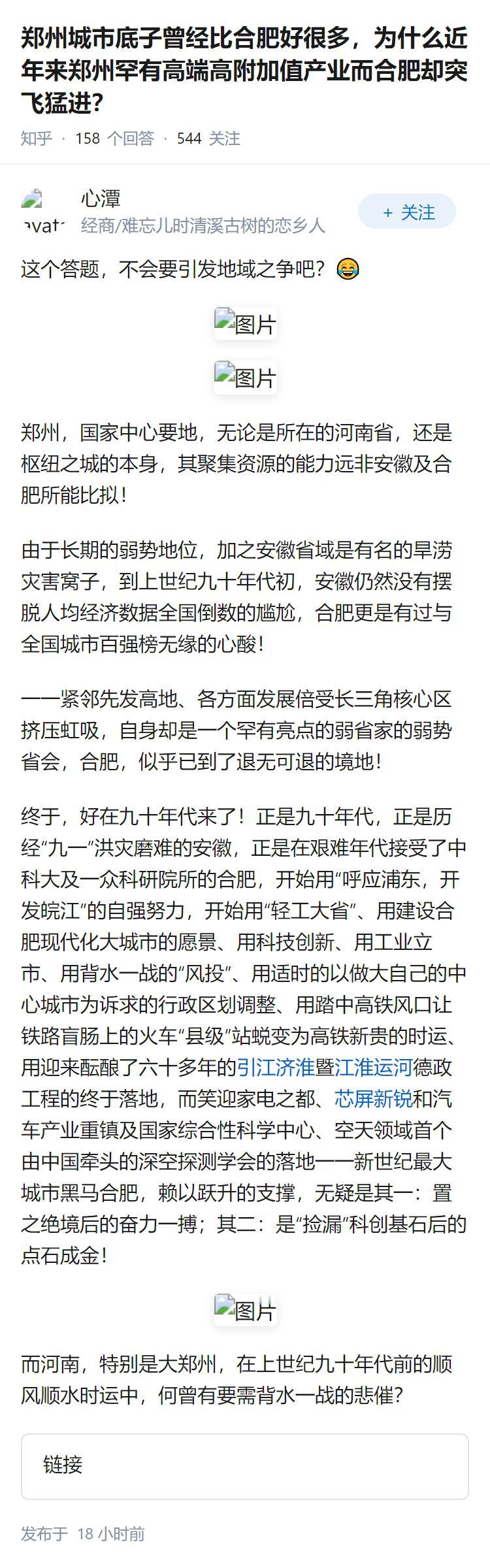 郑州城市底子曾经比合肥好很多,为什么近年来郑州罕有高端高附加值产业而合肥却突飞猛进?