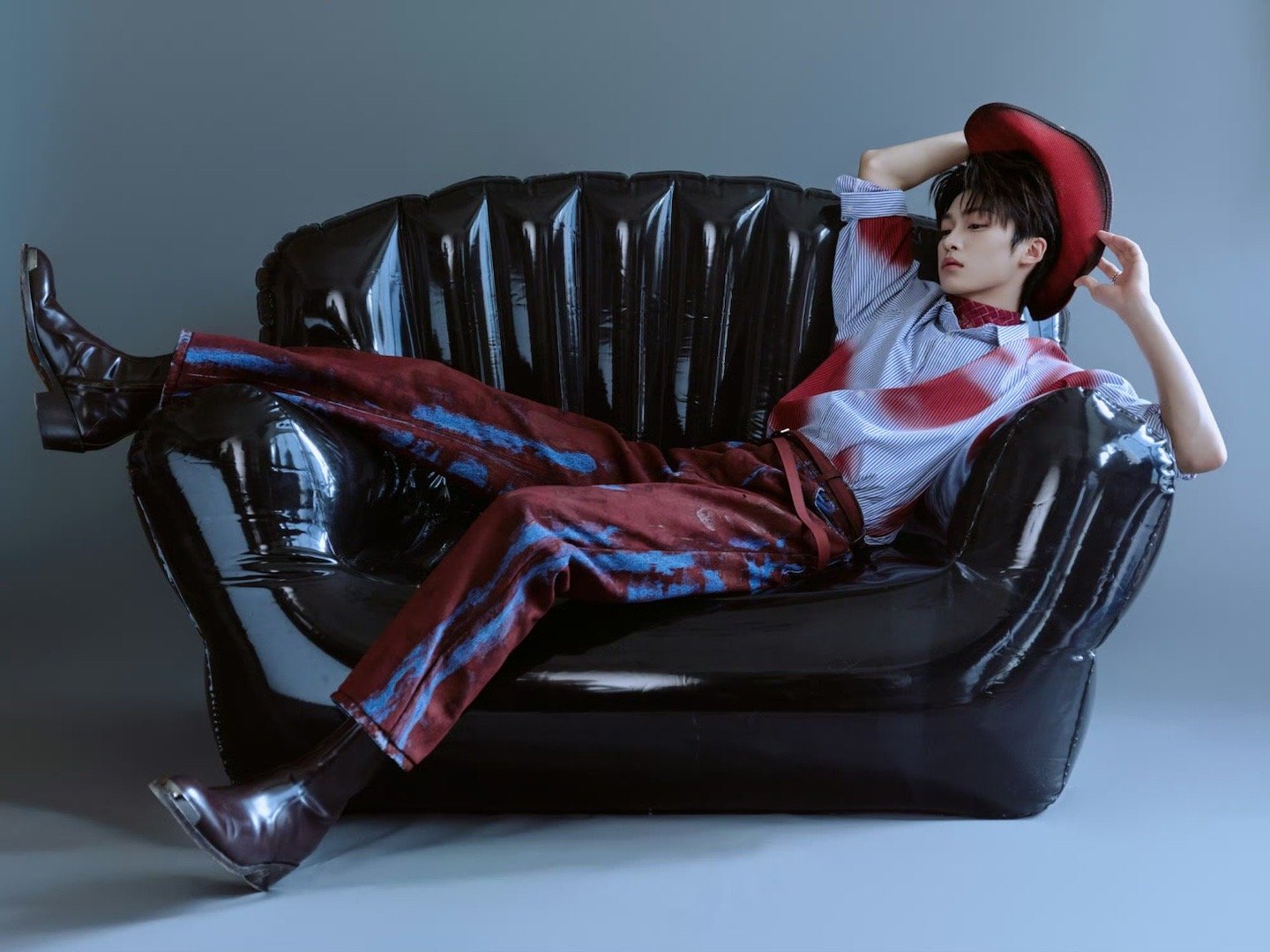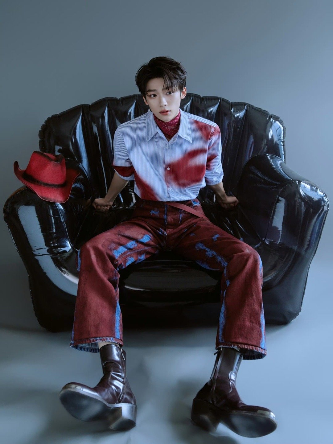 梓渝红蓝晕染造型梓渝音乐节出图红蓝晕染套装摩登时尚感十足帅的很稳定,一会见! 梓