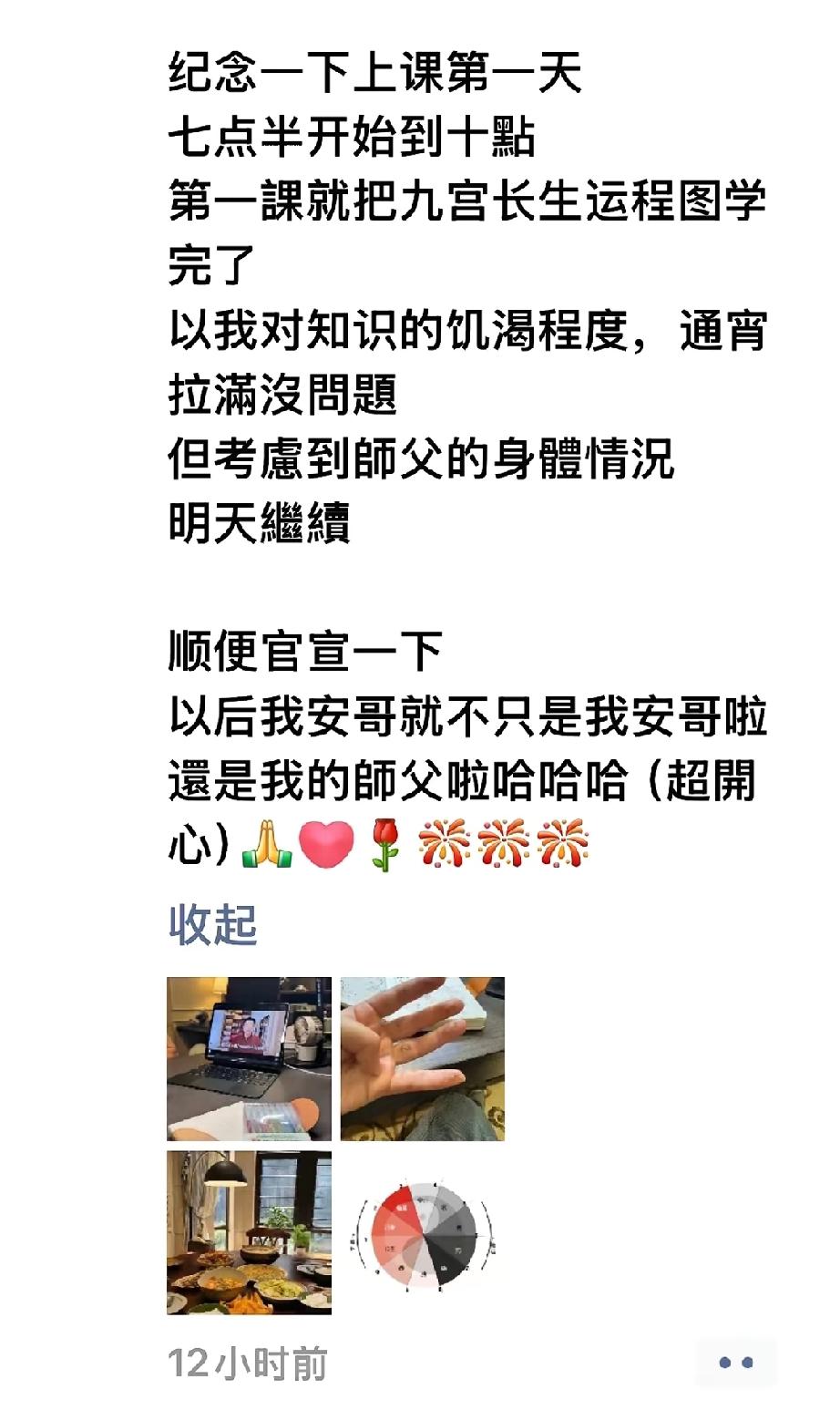 收了一个女弟子,用几天的时间,传授她‘九宫姓名学’,传给她之后,我将不再收徒。 大家不用羡慕她,她的命苦呀,取了个烂名字,使得她有生以来总是事倍功半,很多事情好比‘羊叉打兔子,处处打在空里’。 她的学历不错,也有慧根,尤其是在‘山医命相卜’五术方面,有极大的学习热诚与悟性。 教给她,也算是为她开了一条路。 安哥居然还精通‘姓名学’? 呵呵,安哥精通的还很多呢,音乐只是其中一种,只是人生苦短,时间不够了,这是众生平等的地方。