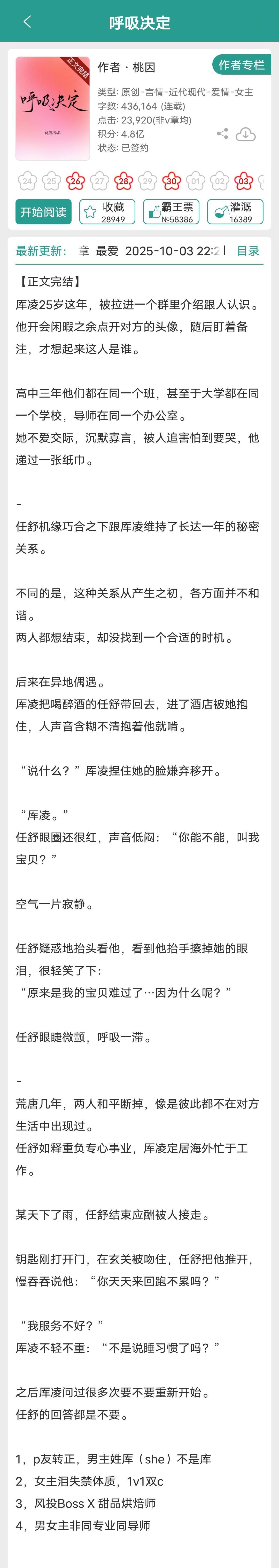 近期完结的言情小说实在太多了1《古代生活日常》一蝶入梦2《呼吸决定》桃因3《臣妻