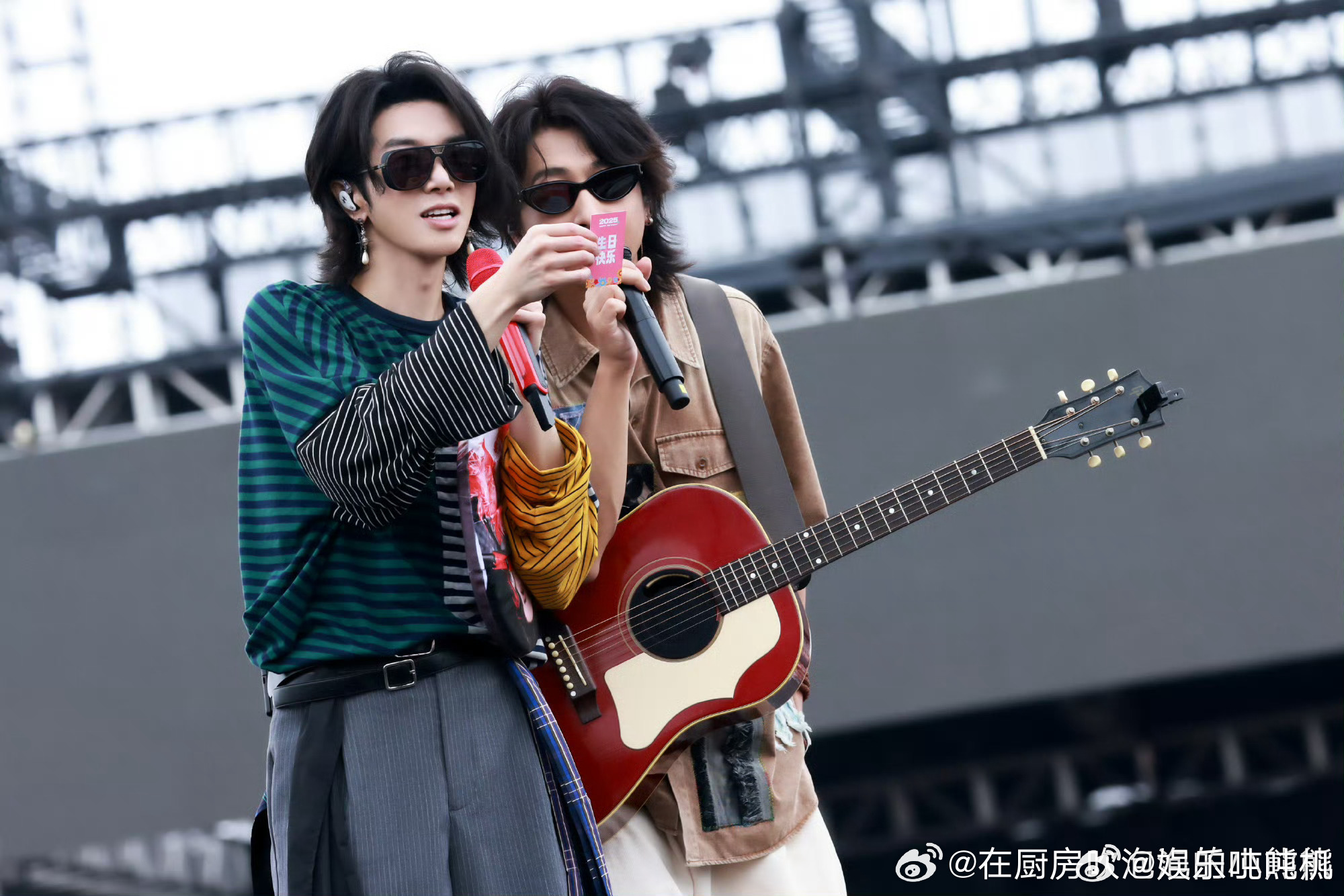华晨宇亲了华晨宇舞台上出现了一个超大号表情包版粉扑,上面印着他年轻时的表情,他