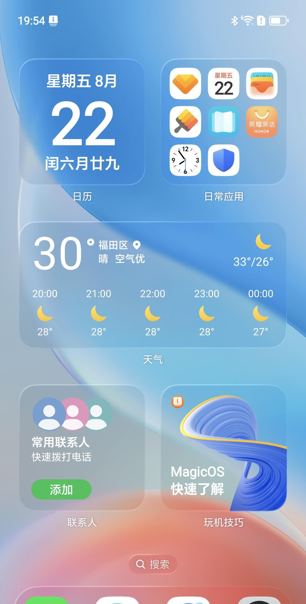 你们觉得谁家手机系统界面做的好看 有一说一,最新的荣耀MagicOS10的设计真的惊艳到我了,相较上一代配色更加潮流年轻化,最重要的时加入了毛玻璃质感的通透效果,桌面小组件、文件夹都能用,质感和档次一下子就上来了 荣耀Magic8系列发布之后应该会很快大面积公测,据说这一代在流畅度、AI玩法上也有显著的升级,到时候给手里的机器升一下体验体验