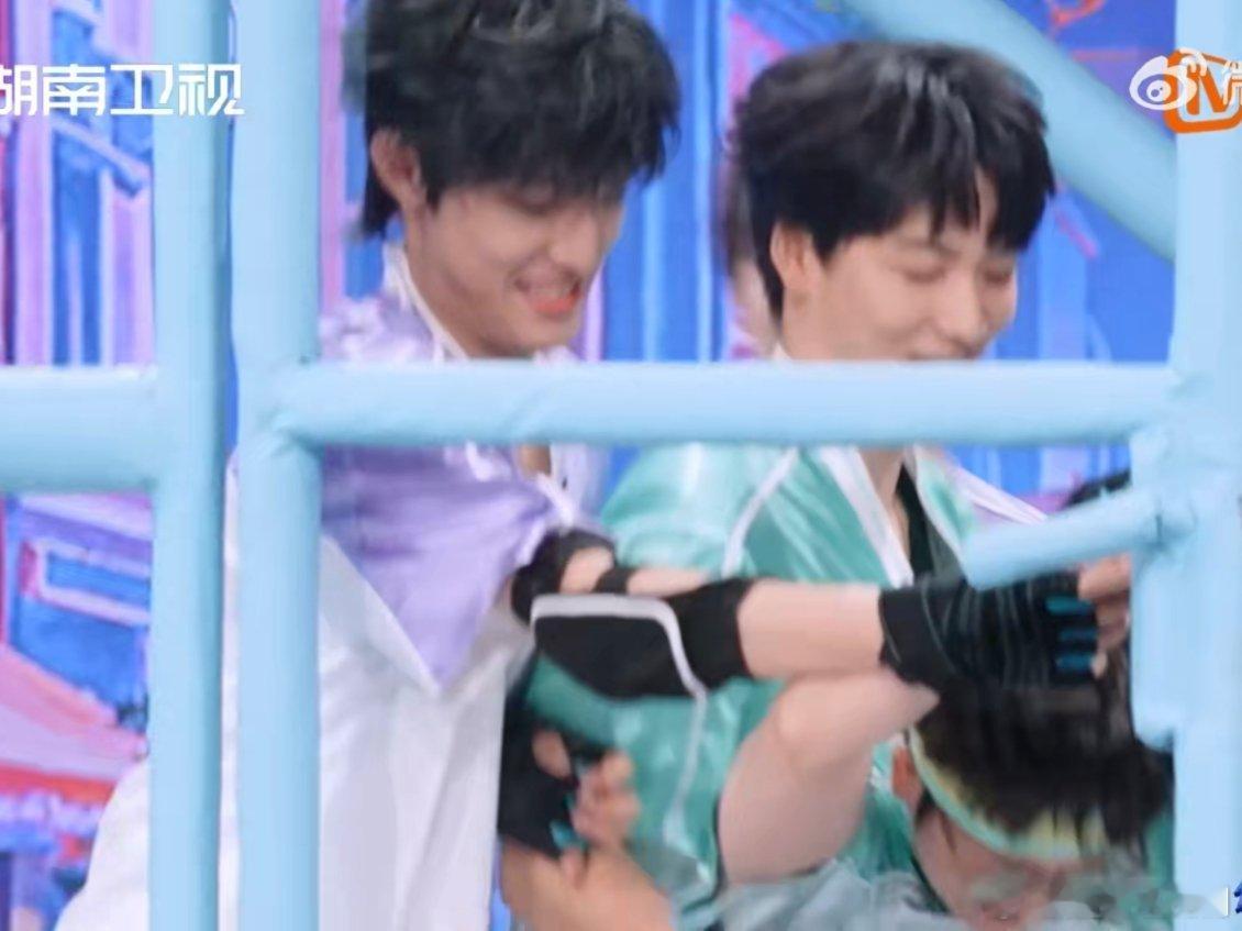 0713登陆少年有的是力气和手段0713和登陆少年在“勇气的挑战”出笼里,拿手脚抵住,大家纷纷使出力气和手段,最后还是王栎鑫技高一筹啊!你好星期六