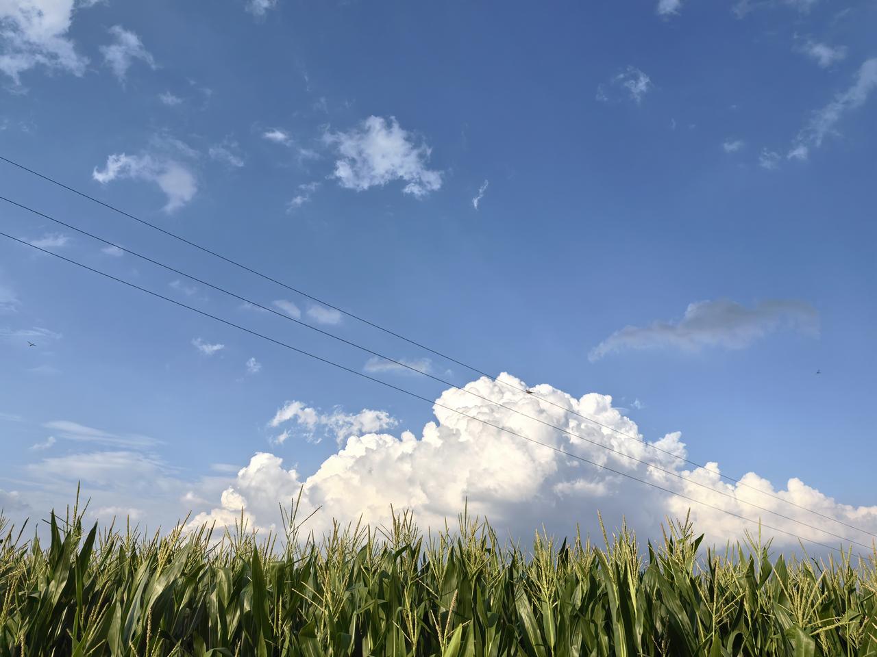 在一片广袤的田野上,玉米秆郁郁葱葱,挺拔而立,顶部的雄花穗在微风中轻轻摇曳,昭示着蓬勃的生机。几条电线横在其间,为这自然的画卷添上了一丝生活的印记。 偶尔,还有飞鸟掠过天际,给这片宁静的天地带来灵动的气息。这般景象,是乡村田野独有的惬意,是自然与生活交融的美好瞬间,让人的心灵也随之沉静、舒展。
