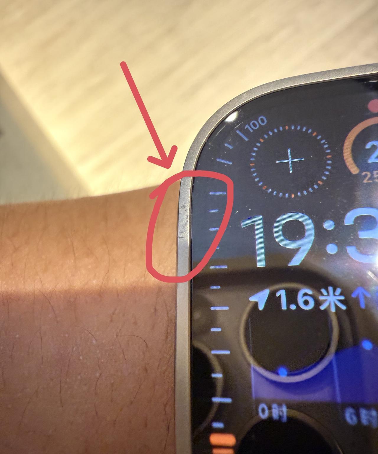 Apple Watch 3戴了还不到一个星期,边框已经被我整出这么多划痕了[捂嘴哭] 还好我选的是钛金属原色的版本,非光线直射情况下没那么明显。这要是搁黑色漆面的Ultra,不得糟心死[苦涩]