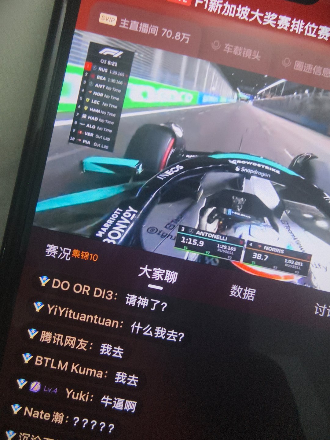 连Wi-Fi看不了 但开流量能看[doge]来支持了🏁f1新加坡大奖赛