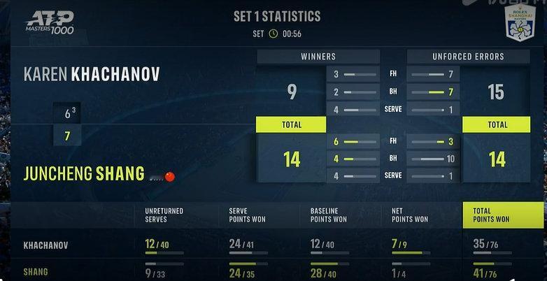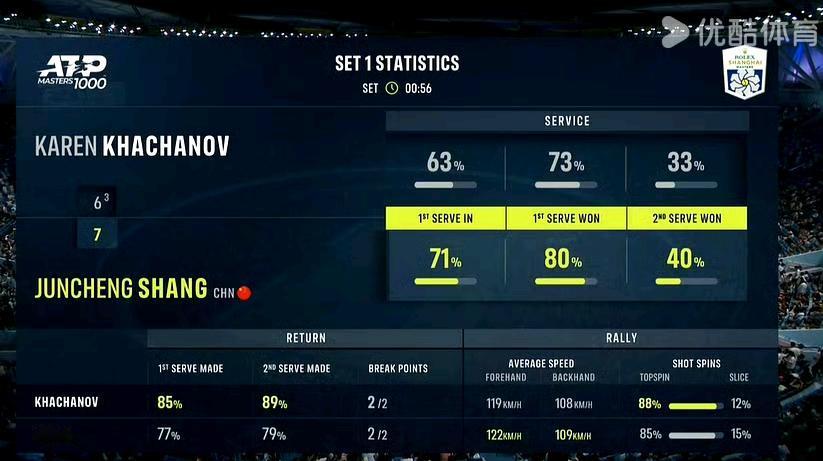 好消息!2025上海大师赛男单第二轮,对阵卡恰诺夫,商竣程抢七拿下首盘。 小商5-6的发球局及时为抢七到来提升状态,整盘像上轮一样打得积极主动又有切削和上网变化,制胜分和正手平均球速都领先。 但愿第二盘合理分配体能,提高进攻效率,速战速决。