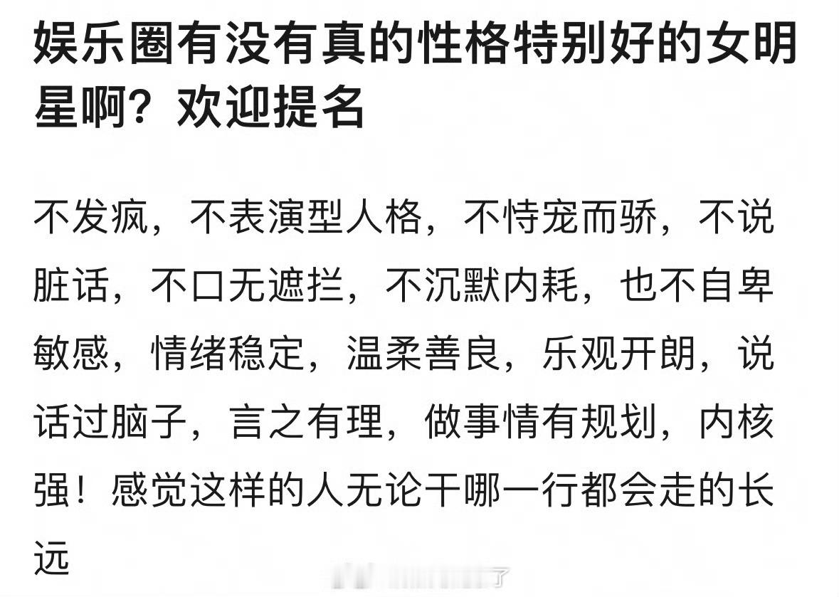 内娱有没有真的性格特别好的女明星?情绪稳定、言之有理、温柔善良、乐观开朗…🤔