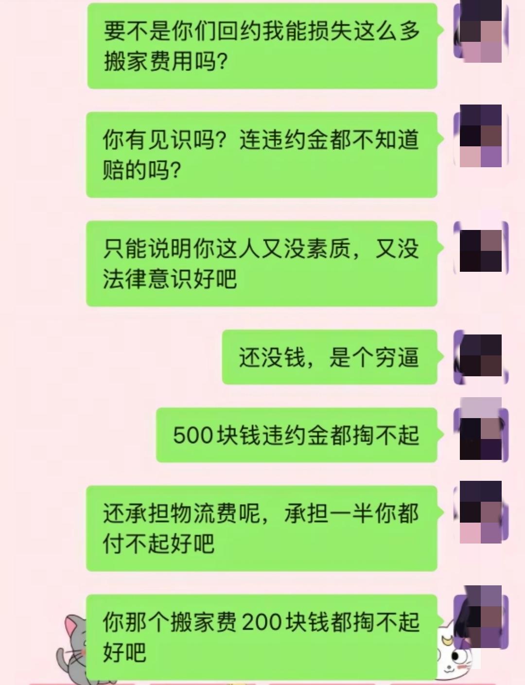 为什么明明自己不占理的情况下,自己依旧能够如此自信。 我在中介那里租房子,什么事情都已经谈妥的情况下,我跟他说我有一只宠物猫,可不可以入住,他当时跟我说是没有问题。 后面被房东发现有宠物要我立刻搬离,但是我跟中介聊的时候,他说可以带宠物,我要求他们赔偿违约金,主要是中介的问题,他作为中间人,在明知我告诉他我带有宠物的情况下,他依然让我入住,恐怕都没有跟房东商量,这就是他的责任。 就这样证据充足的情况下,他依旧不愿意给违约金,因为他的原因导致我直接的经济损失,货拉拉搬家费用是200,我跟他在说这个事件的时候,他一直在转移问题,他说自己多么多么有钱,有多少人脉,有车有房,但就是不愿意给这个费用,东扯西扯。 之后他就跟我说,也就住了两天的事情,还有脸要违约金,合同上都写清楚了,不是我的问题导致退租要赔违约金。 如果是我的问题,提前退租,他也不会把押金退给我。 这种人典型npd,从头到尾对于正面的问题一直都不回复,一直不停地扯别的话题来反击,逻辑语言其实都不通,但他的态度又搞得自己是对的错,如果不是逻辑很清晰又一直坚持自己的人真的很容易被带偏,争辩不过开始对他人能力的否定故意的打击来达到自己的目的,跟他沟通真的气人,和npd打交道真的很痛苦,很累不管怎么样npd就是不会正面承认回应错误,一直有理由来扯,又超会否定PUA他人,都要疯了。