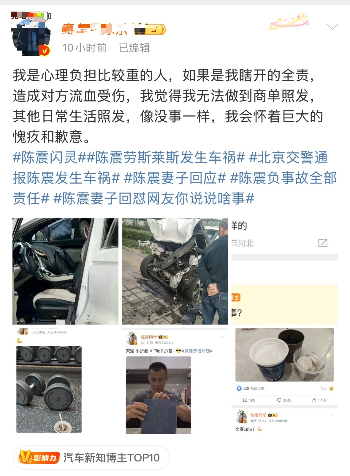 陈震不就是出了一个交通事故嘛,犯得着咬着人不放,疯狗么?交通事故负责就好了,一直道德绑架,不就是想蹭点流量嘛。