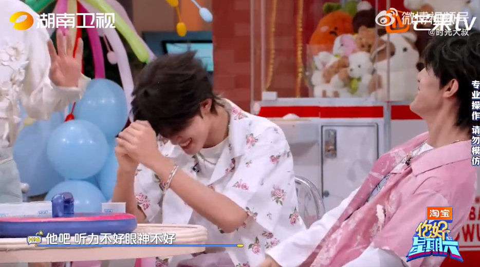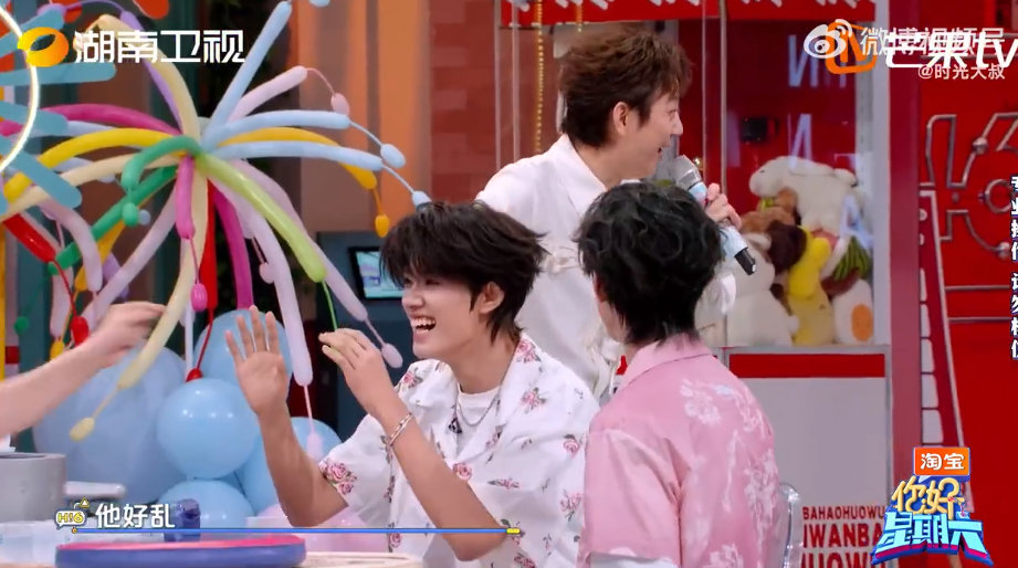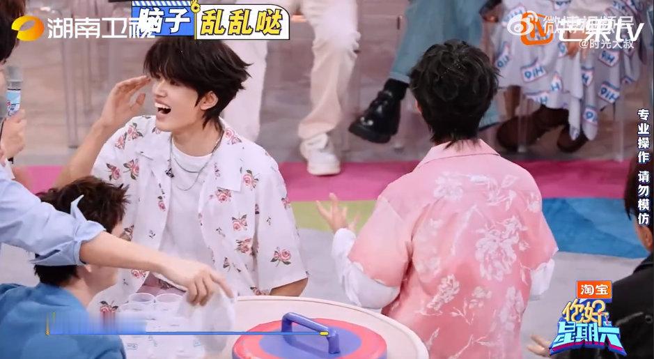 张极被何炅认证适合泼水游戏你好星期六张极在泼水游戏开启左右互搏,一手水一手盾忙
