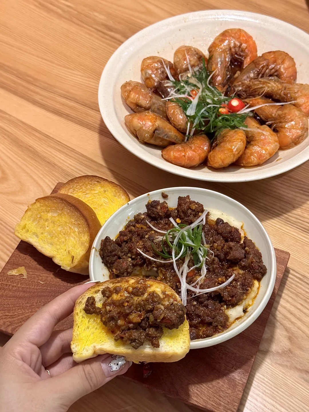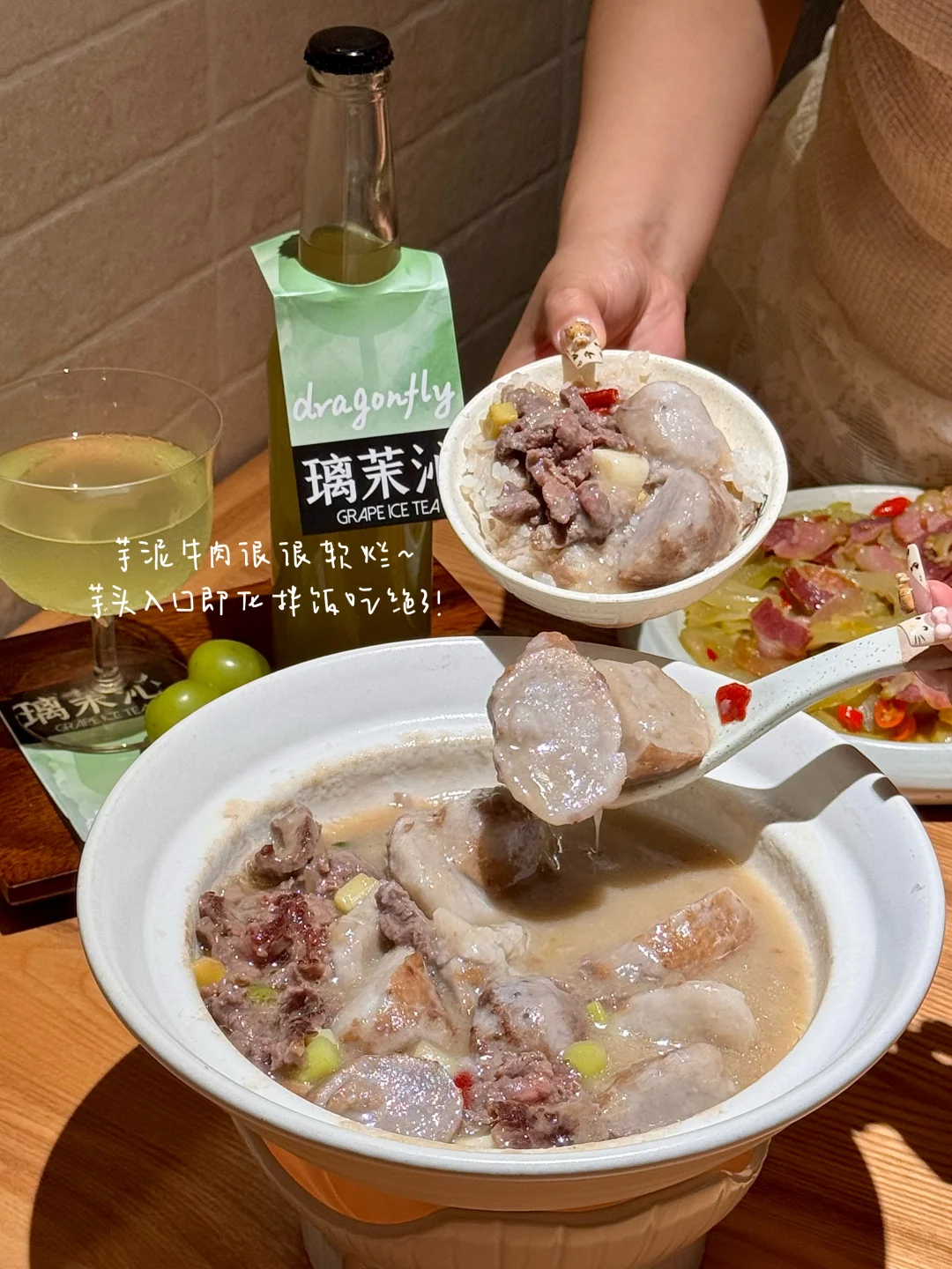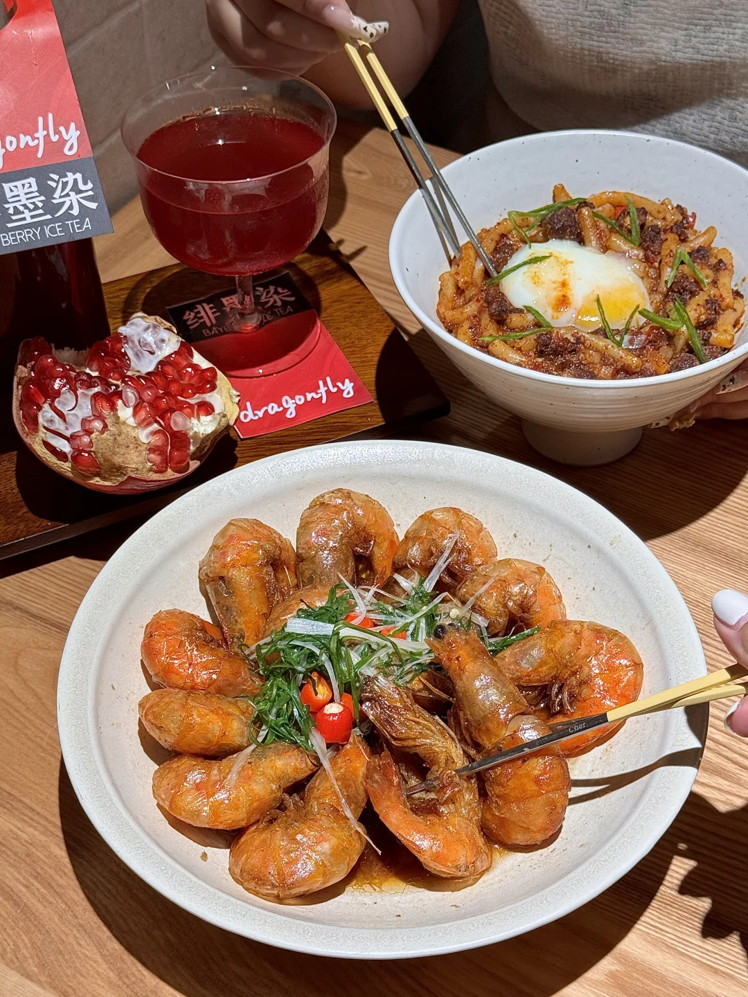 我们点了江西空心粉配温泉蛋 蛋液裹上卷粉梗啾啾的很弹牙~还有腊味青番茄、碎椒牛肉配吐司、梅干菜辣鸡爪…真的jujuju下饭!已经列为我和姐妹可以一周去3次的宝藏小店了😭