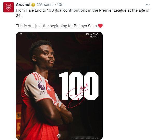 阿森纳官方晒海报向萨卡表示祝贺:恭喜在英超联赛贡献100球,这对萨卡来说还只是个开始❤️ 阿森纳vs西汉姆联 阿森纳著名教授