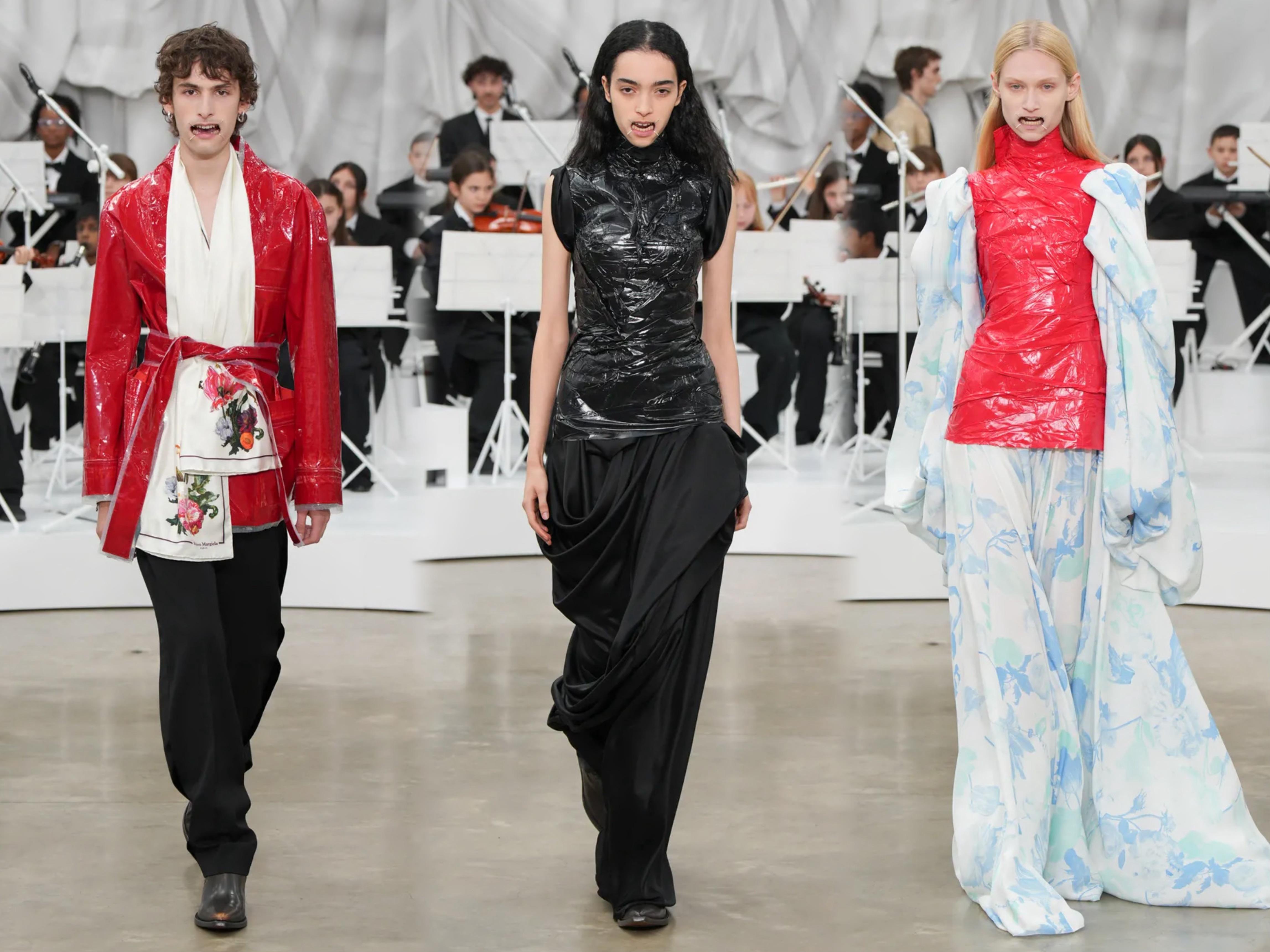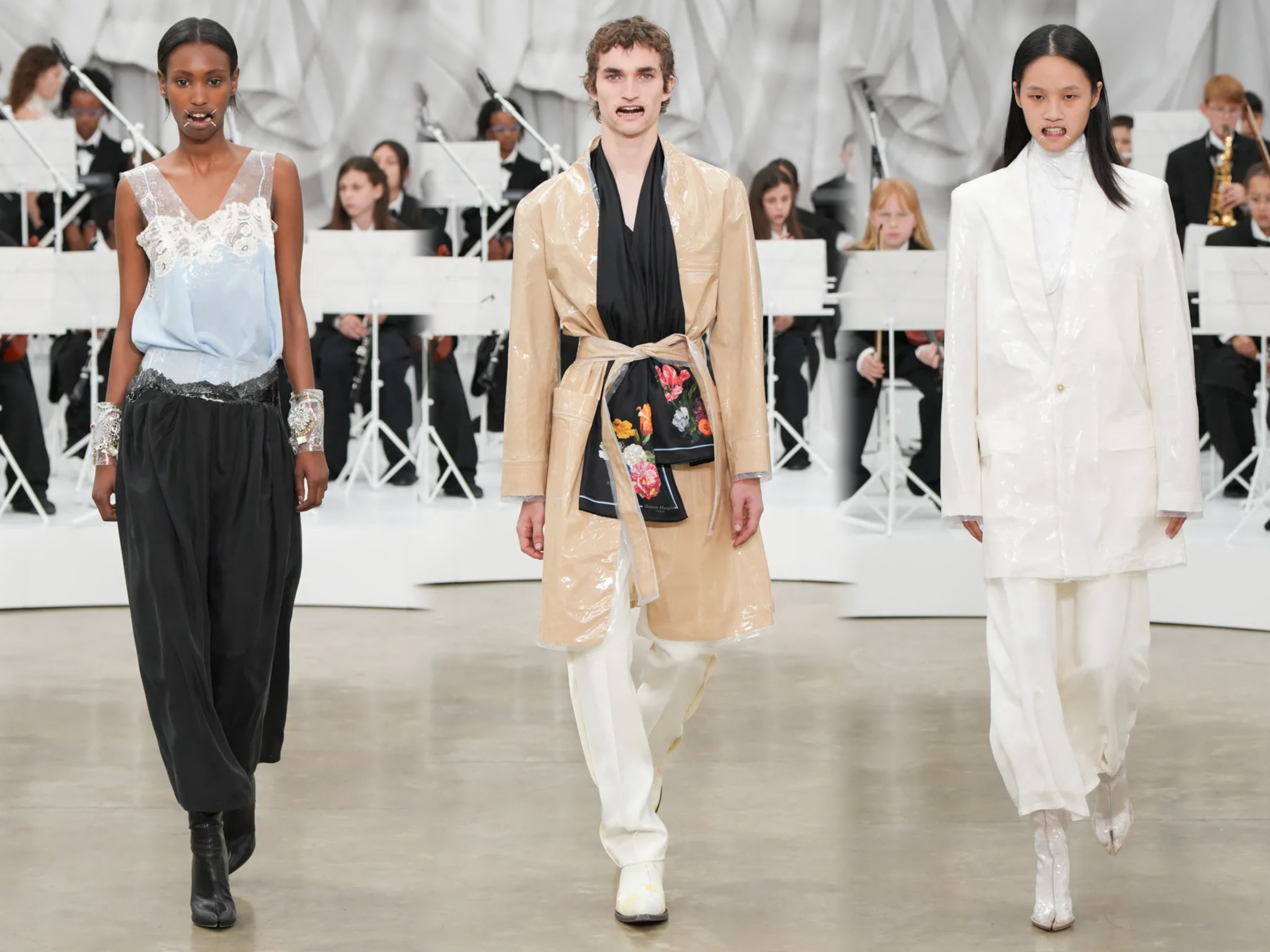 新创意总监Glenn Martens继高定首秀后,带着首个成衣系列登场,秀场模特夸张的“牙箍”造型很抢眼