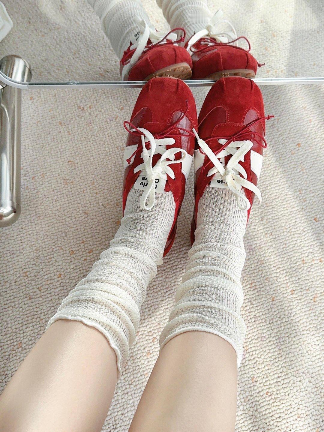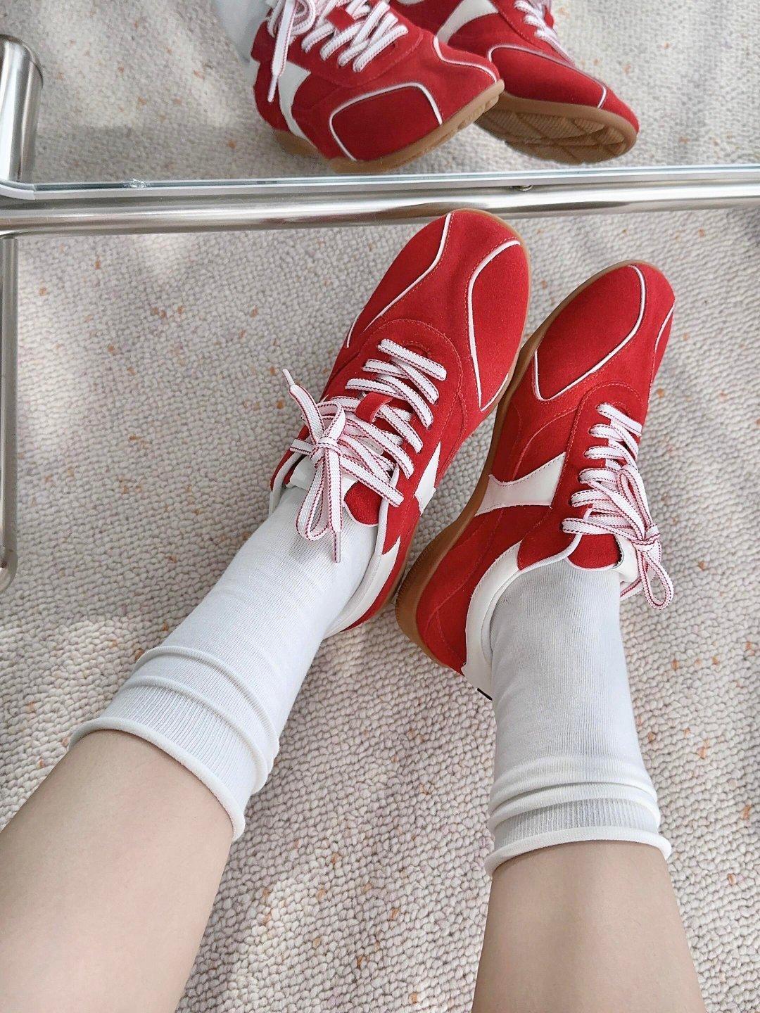 1. 设计融合:芭蕾鞋与德训鞋设计碰撞,休闲运动兼具少女活力。