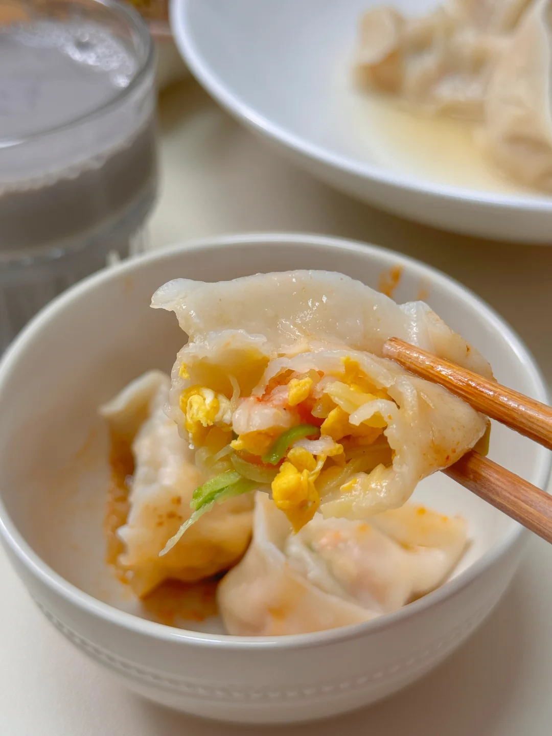 周二早餐搭配:西葫芦虾仁手工饺子🥟蛋黄南瓜🎃黑豆浆 这个饺子馅强烈推荐,个人感觉口感真的很不错,西葫芦的脆爽和虾仁鸡蛋搭配,清爽不油腻 馅料做法: ✓西葫芦,胡萝卜切成细丝,撒上少盐腌制十分钟,然后冲洗干净,挤干水分。 ✓虾仁买回来,剥掉虾壳去虾线,葱姜揉一下挤出汁水,撒点白胡椒粉腌制十分钟 ✓鸡蛋炒好晾凉,虾改刀切小,加入西葫芦丝,调料就放耗油,松鲜鲜,香油,拌匀即可 擀皮擀不好的,直接买饺子皮,也一样好吃😋
