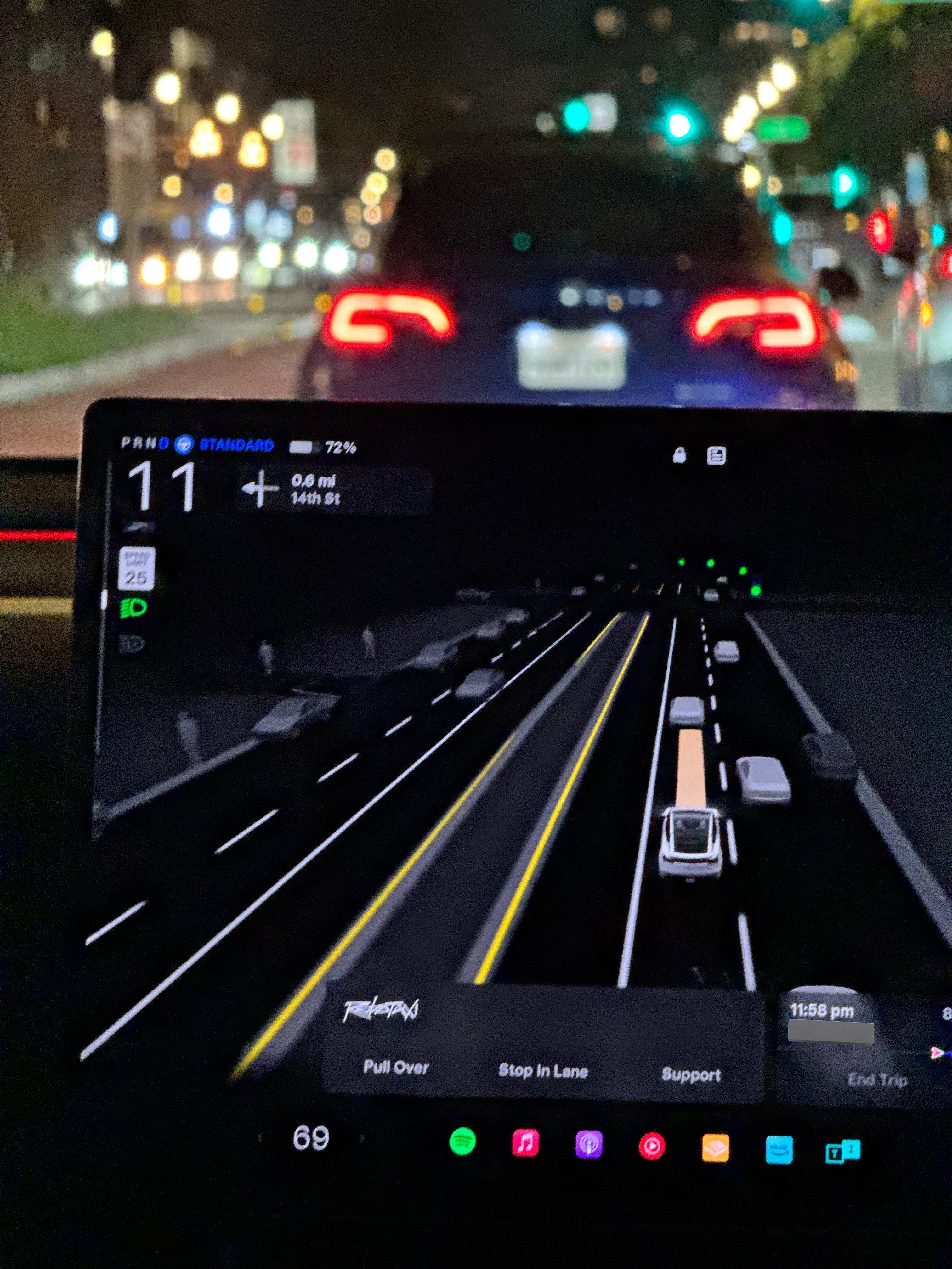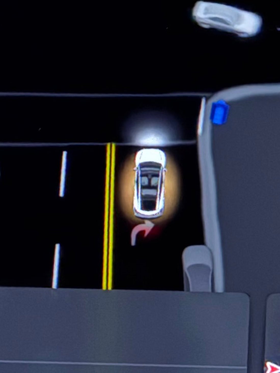 特斯拉 Robotaxi 软件更新,更新后车辆的部分 UI 和模型输出的引导线都变成了金色。