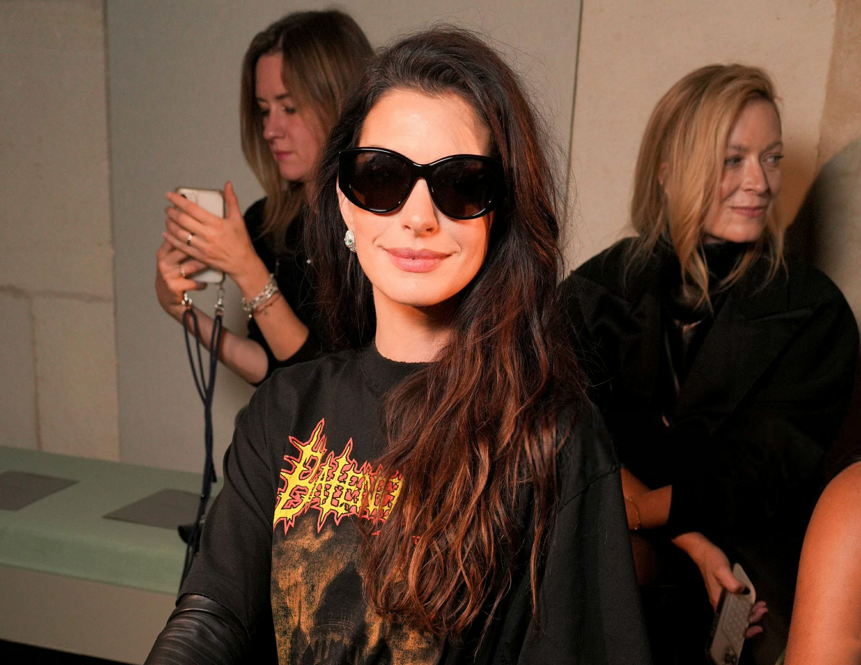 安妮海瑟薇超美亮相巴黎时装周看秀~~[亲亲][爱你][舔屏][憧憬][哇]