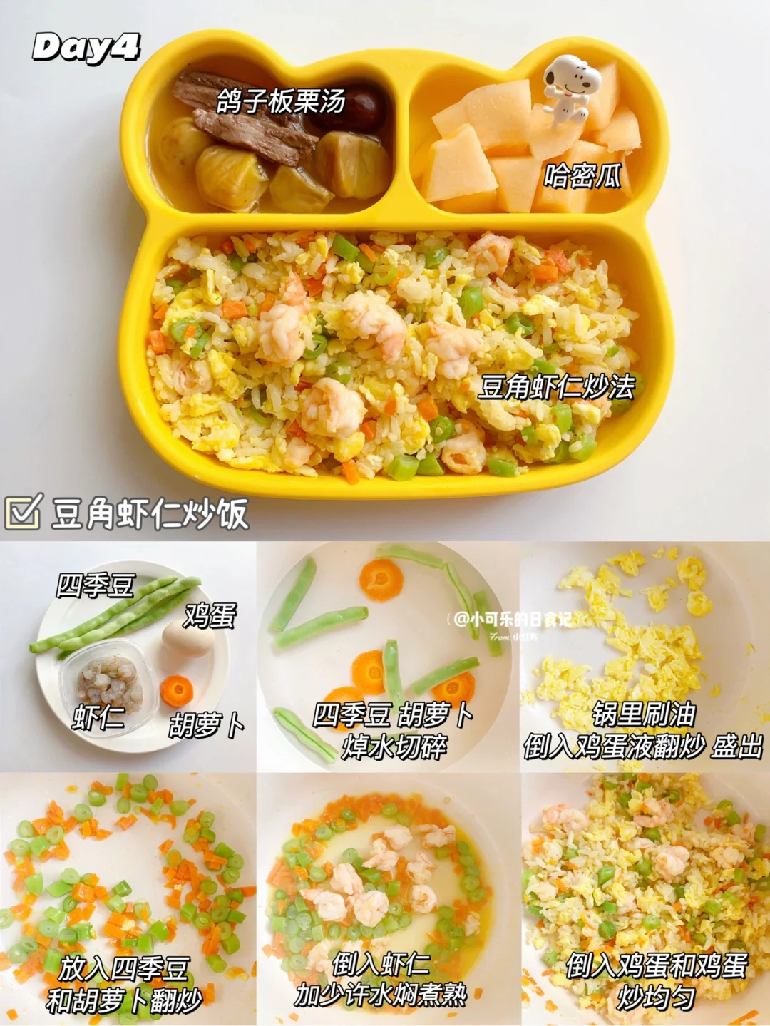 食材:四季豆、鸡蛋、胡萝卜、虾仁