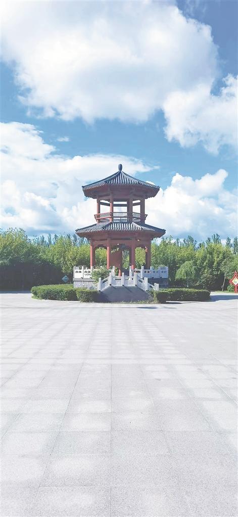 北湖公园则多了几分静谧。由新兴路西侧进入北湖公园,首先映入眼帘的是大牌楼,上书“水天一色、俊采星驰”几个红色大字,让人一下就想起了《滕王阁序》那些脍炙人口的句子。北望公园深处,草木葳蕤,翠樾蔽天。潜龙亭静卧水边,供游人小坐休息,也可坐于亭中观赏满湖的荷花开放,是桦西湖打卡地之一,且非常出片。水面倒映着蓝天白云,偶有微风拂过,涟漪便一圈圈漫向远处,天光云影,晚霞夕照,真有“落霞与孤鹜齐飞,秋水共长天一色”的既视感。器械场地总是最热闹的地方,拉伸肩周脊背的、按摩腿弯的、练腰的、引体向上的各种锻炼,体现城里人们珍爱生命、注重健康、注重养生的良好生活习惯。
