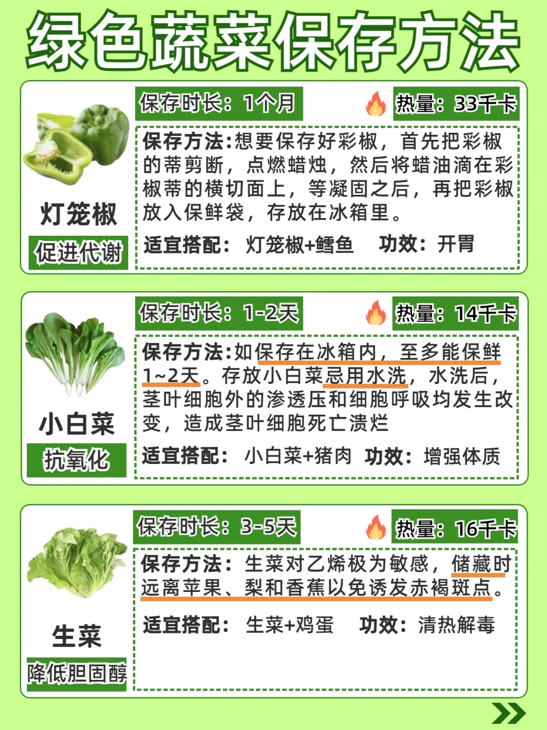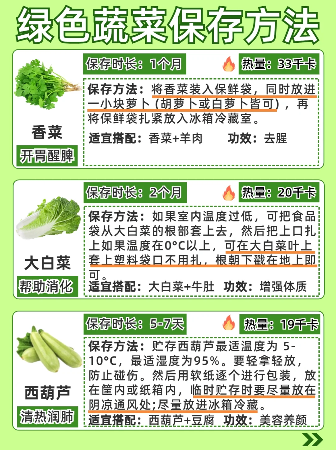 🔸大白菜➡️保存时长2个月 ➡️热量20千卡