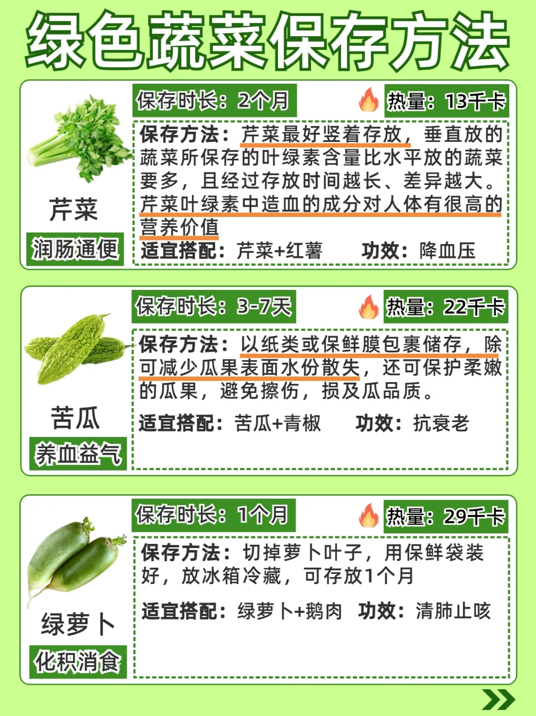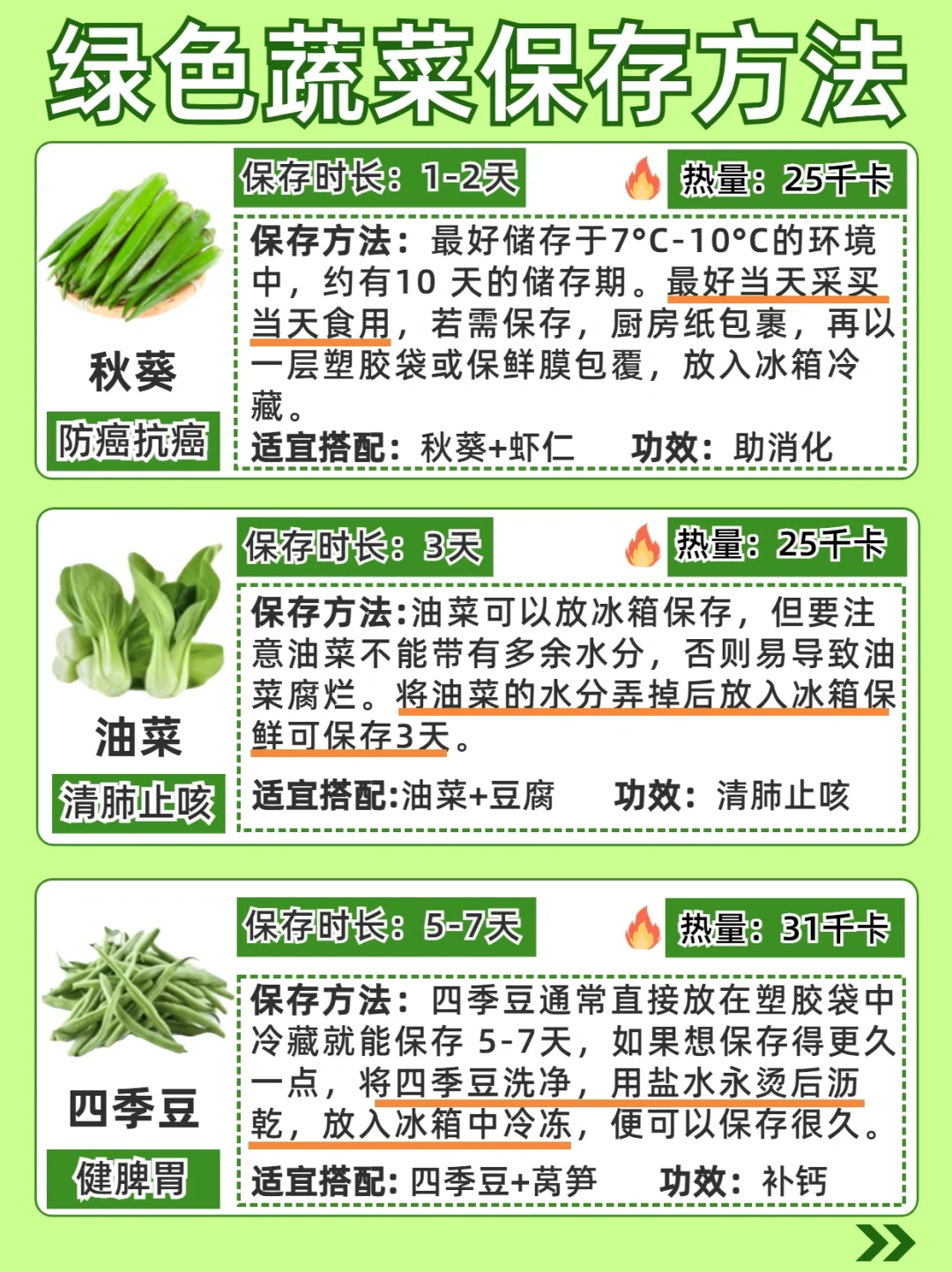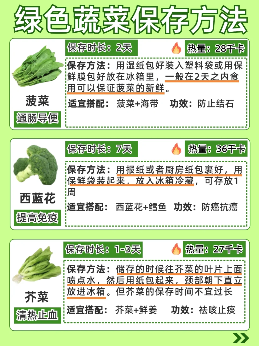 今天给大家整理了一期2⃣️5⃣️种常见绿色蔬菜的冰箱保鲜方法,赶紧🐎住~