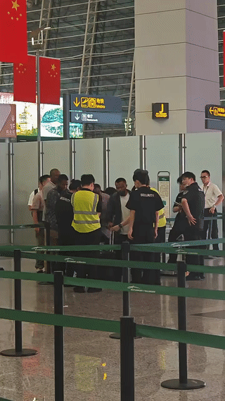 广州白云机场。 一名黑人男子因为行李箱超重被机场工作人员拦下。 黑人男子气急败坏的竟然大声呵斥工作人员! 最后不顾阻拦强行闯了过去!广州外国人