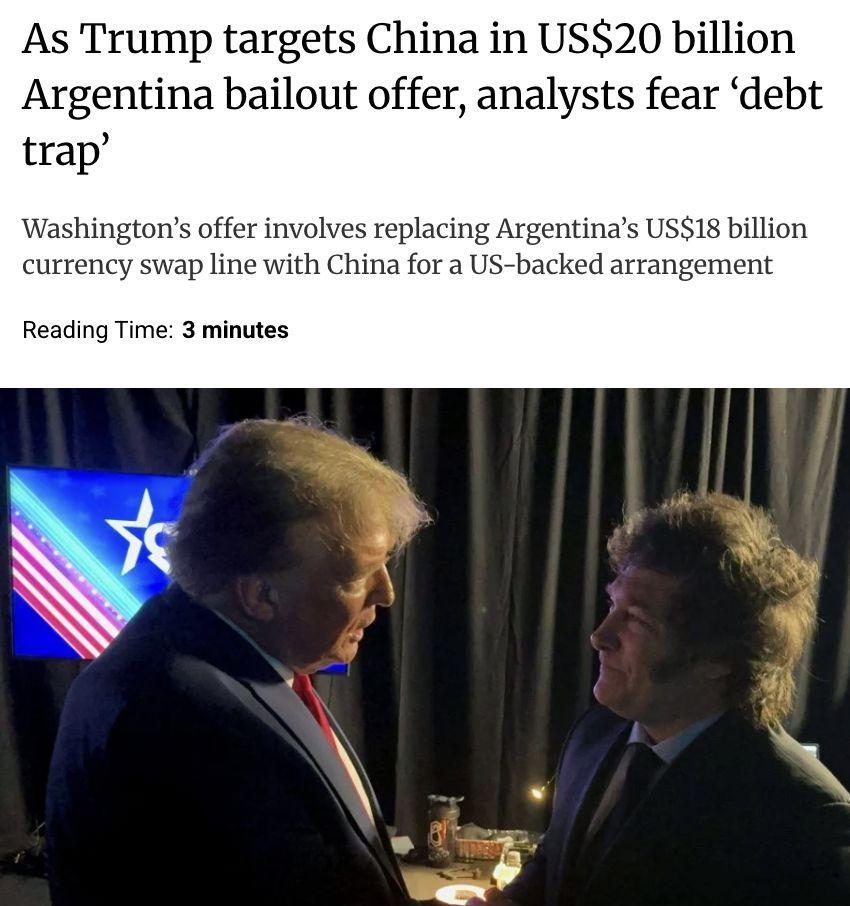 美国这回给阿根廷摆了个局。 先说给200亿美元援助,转头就提条件:必须先停了和中国那180亿的货币互换协议。不答应?连IMF的贷款都可能给你卡了。 这心思再明白不过。拉美是美国的传统地盘,现在中阿做生意用人民币结算的比例都到37%了。美元以前在这儿说一不二,现在有人分走这块蛋糕,美国哪能坐得住。 可阿根廷早就被经济熬得没脾气了。2024年初手里的外汇储备才280亿,为了稳住比索汇率,三天就抛了10亿美金。现在一块人民币得两百多比索才能换得到,钱贬得跟纸似的。 中国的协议是真能顶事儿。2023年阿根廷用了350亿人民币额度,才没让收支崩掉,还拿人民币还了IMF的欠款。 2024年续签协议,把还款推到2026年,不然当年要还的48亿美金,根本拿不出。 美国那200亿听着唬人,其实是张空头支票,连个到账日子都没有。 之前阿根廷信了美国的话,推进美元化,把比索兑美元贬到1:800,结果美国援助没兑现,反而加征10%的关税。 这种亏,阿根廷过去几十年吃了不少,找IMF救了23次,每次都被捆上一堆苛刻条款,经济越救越糟。 所以阿根廷悄悄做了选择。不光和中国续了约,还降了大豆出口税。几天内就有40船大豆登记要卖到中国,因为用人民币结算能省掉美元中间商的差价,每吨多赚5个点。85%的大豆出口商都这么选,这都是实打实的好处。 这年头谁都不傻。是真帮忙还是拿好处当钩子,一眼就能看明白。 #阿根廷金融政策# #阿根廷# #阿根廷发展#