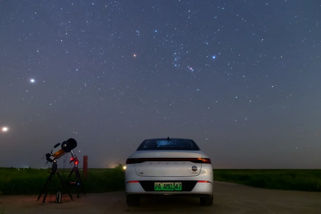 虽然还是大热天的8月,但是凌晨已经能看到冬季星座之王猎户座了!这地方没什么地景,拿自己凑数。