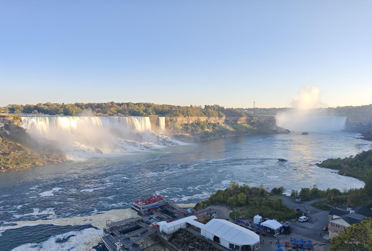 经13个小时的长途飞行,当地时间中午13点,平安到达多伦多。 世界知名自然景点尼亚加拉大瀑布就在距多伦多百余公里出,机会难得,不容错过。 位于加拿大安大略省和美国纽约州的交界处尼亚加拉大瀑布,是世界著名的跨国瀑布。 以其磅礴的气势和壮观的景色吸引着全球游客。今日一见,果然名不虚传。