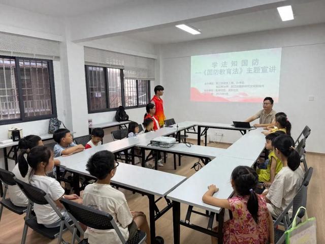正值全民国防教育月开展之际,为进一步增强社区青少年的国防观念和爱国情怀,9月13日,汕头市金平区鮀江街道办事处联合鮀江司法所在鮀都社区组织开展“学法知国防”主题宣讲活动,通过专业授课、趣味互动等形式,让国防教育深入人心,激发社区青少年的爱国热情。