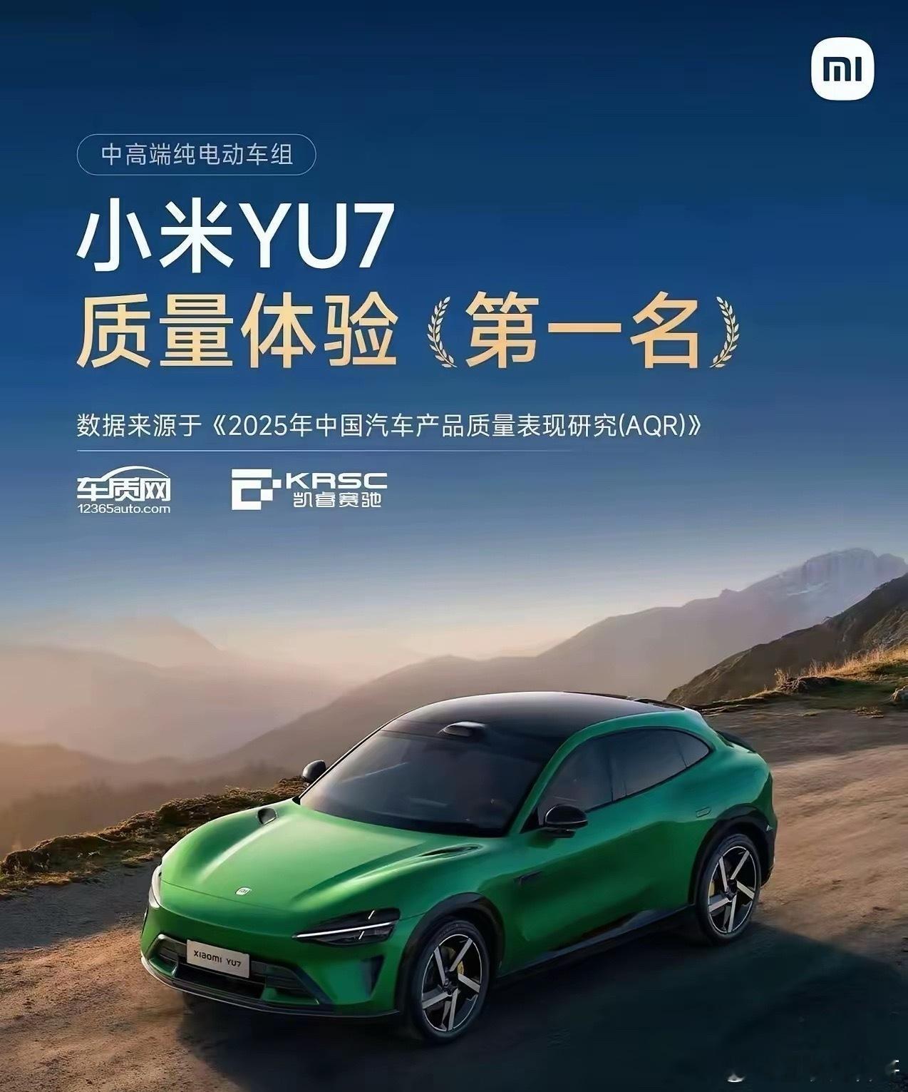 小米汽车又第一了!小米SU7和小米YU7分别都是质量第一!