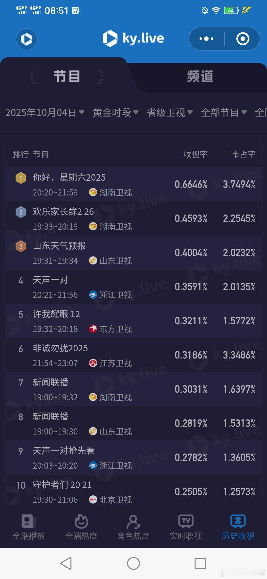 hi6收视率排名第一《你好星期六》好久没这么高的收视率了[good][good]