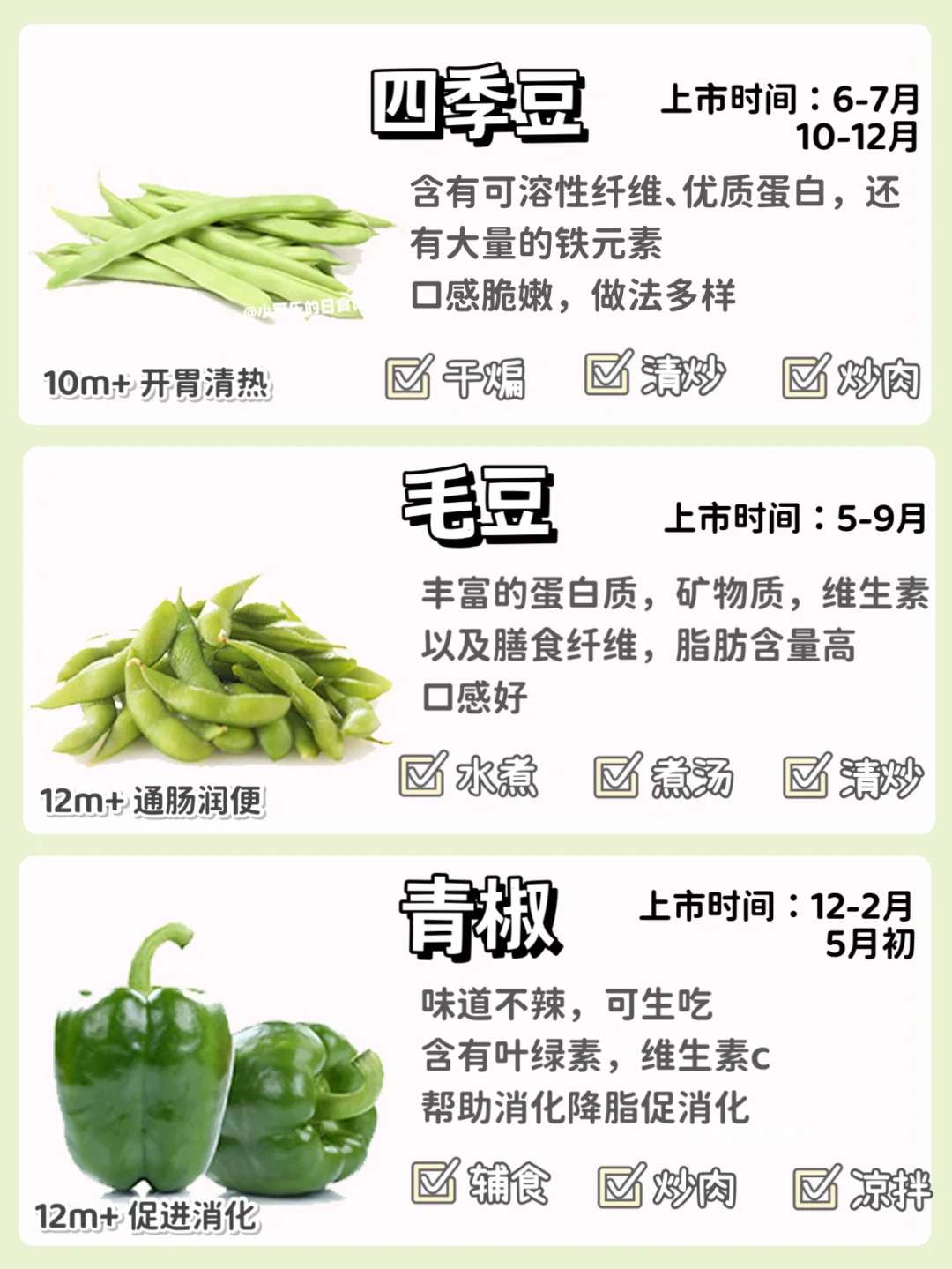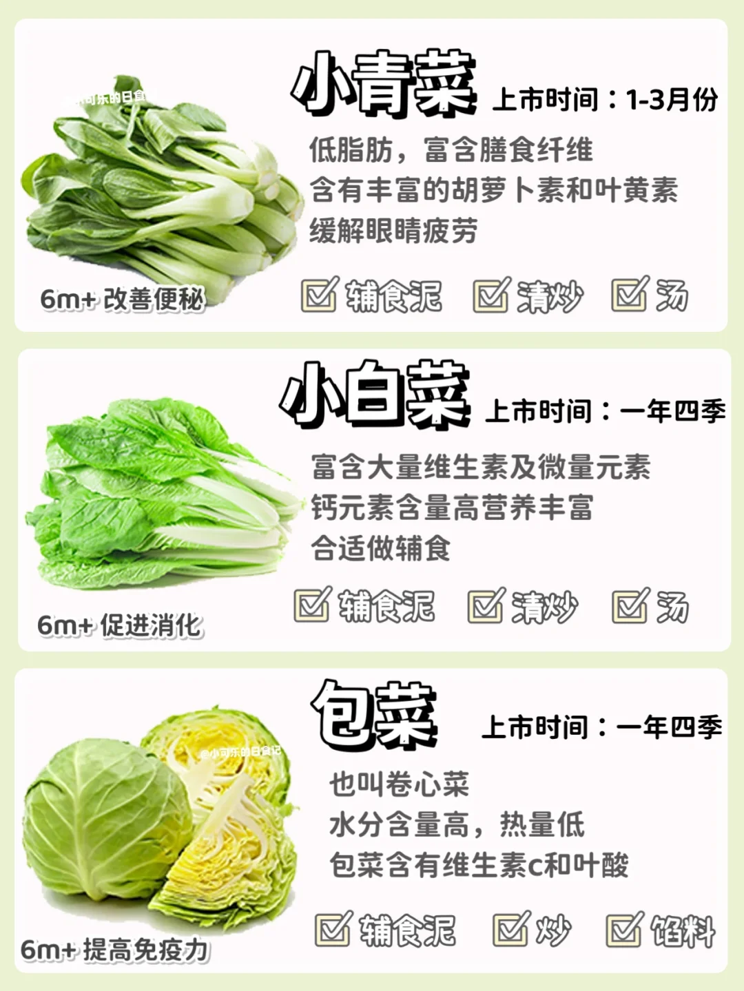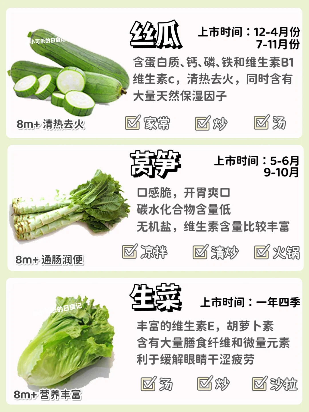 应季绿色蔬菜时间表‼️营养价值,添加顺序