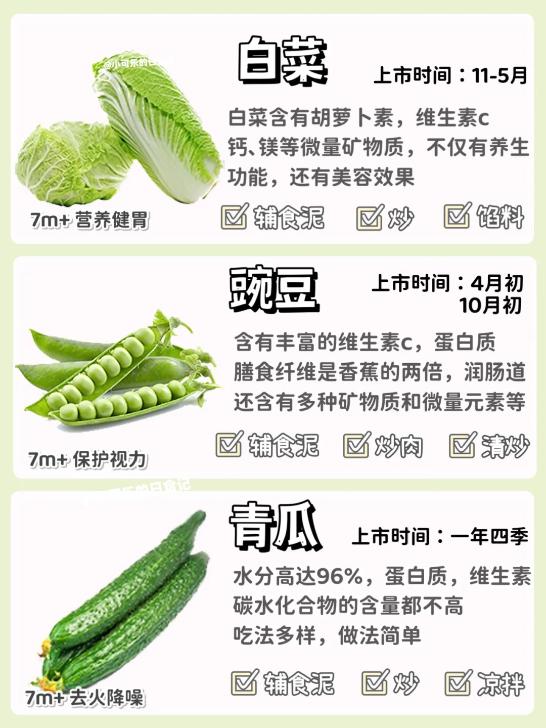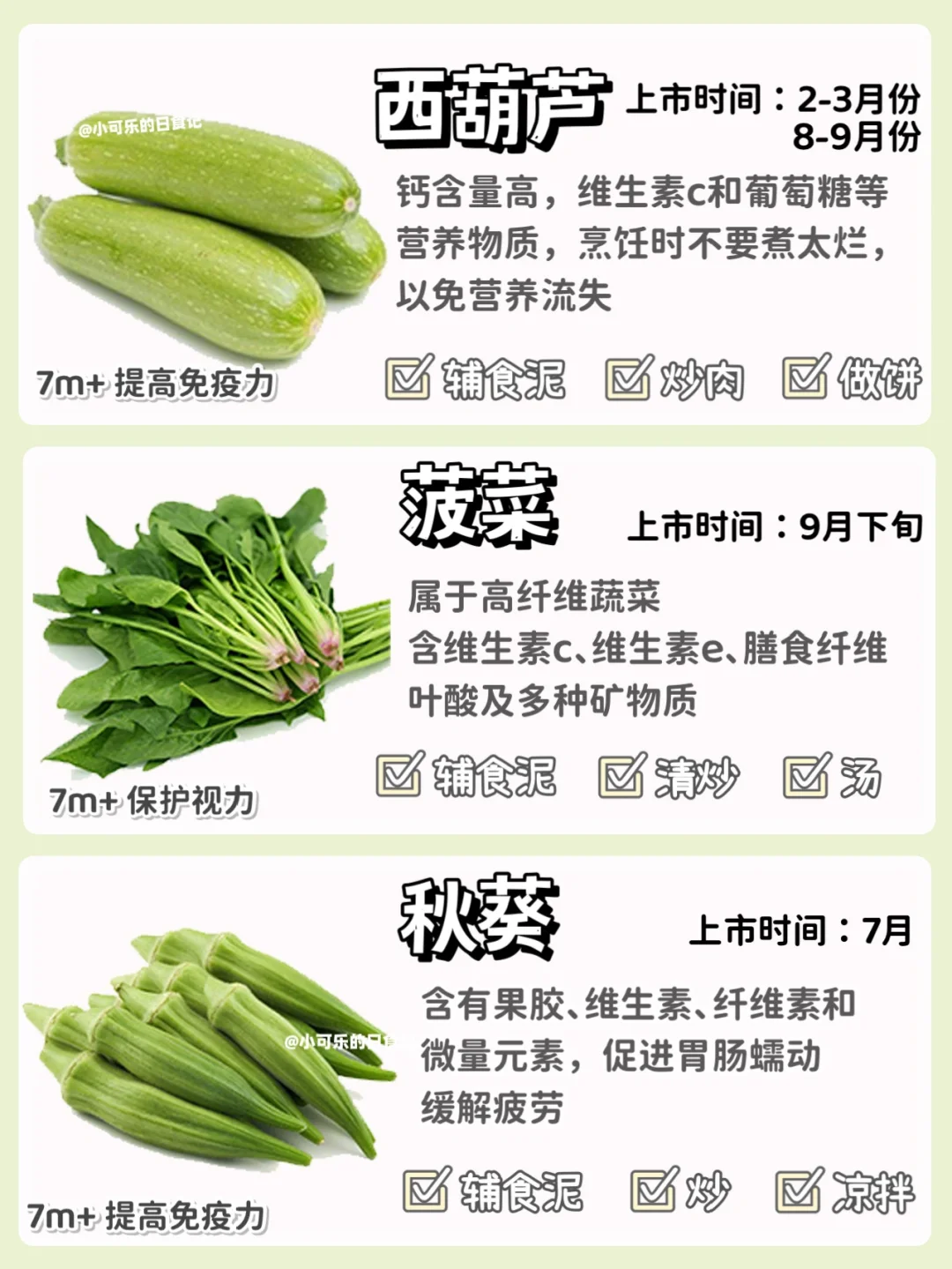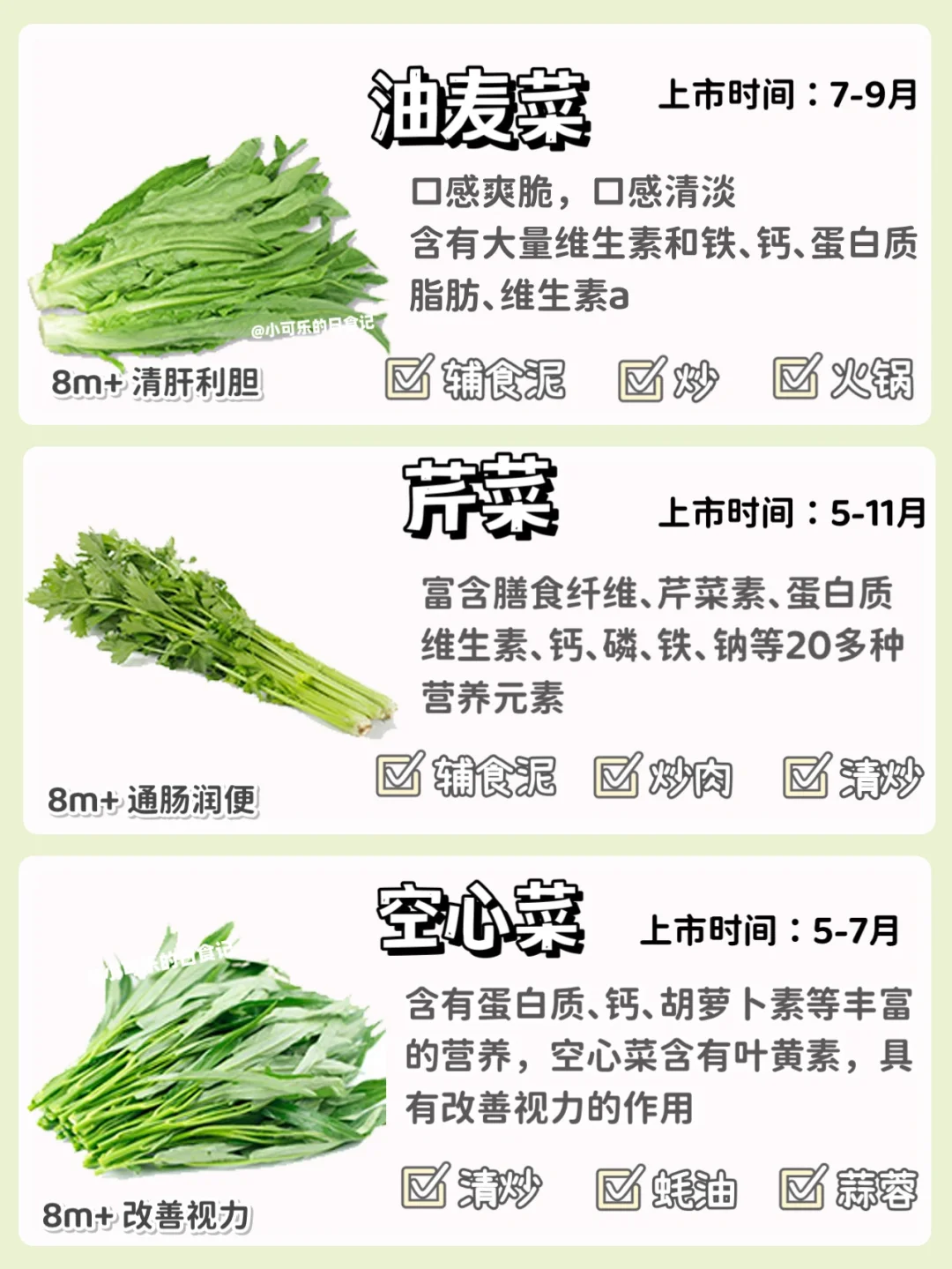 应季绿色蔬菜时间表‼️营养价值,添加顺序