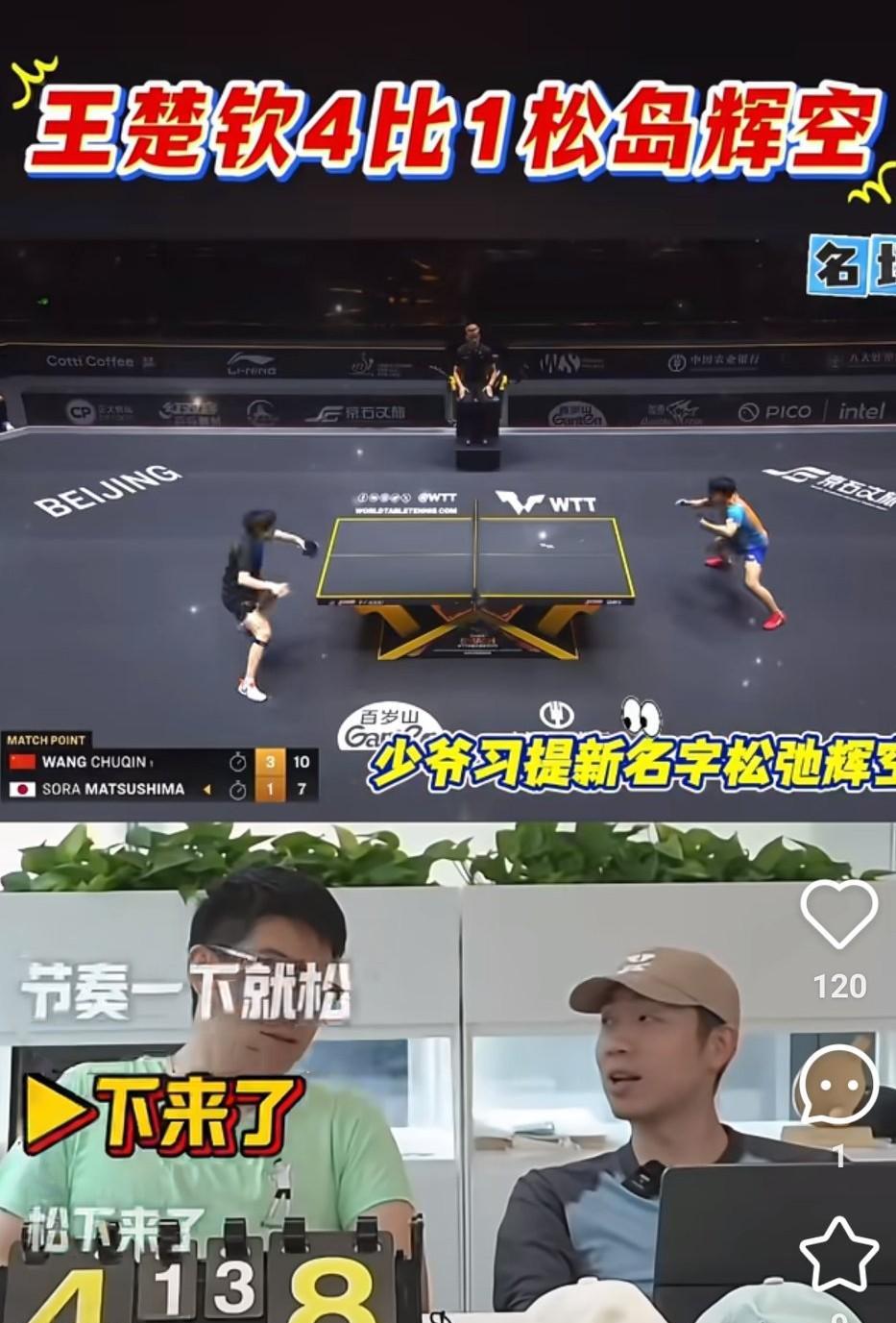 看许昕解说比赛,太逗了。 昨天王楚钦的松岛辉空的比赛,许昕也有时间解说了,松岛辉空喜提新名“松弛辉空”,解说的时候许昕一直喊松岛辉空是少爷,到了第三局比赛的时候,他说要看看少爷打球还是不是上一局那个劲儿。许昕说依他对松岛辉空的了解,后来王楚钦比分5:1领先时,许昕说松岛辉空平时打球就是觉得能赢,他就很拼,觉得赢不了了,就放弃了,看着第三局许昕说这局少爷不太想打了。 还以为松岛会继续摆烂,没想到第四局他又在线了,还扳回一局,许昕一脸惊讶,哈哈。看来后面松岛还是有想赢的欲望了。第五局比赛快结束时,比分拉开,松岛的节奏一下就松了。 许昕解说比较幽默,很多人都喜欢在他直播间。不知道今天的决赛,许昕会不会直播。